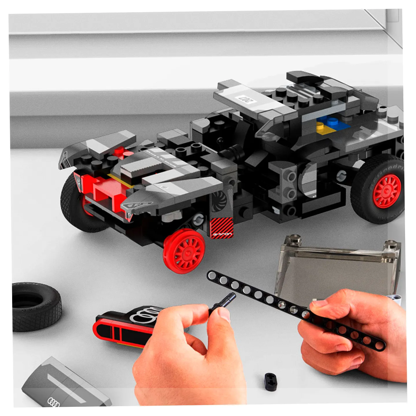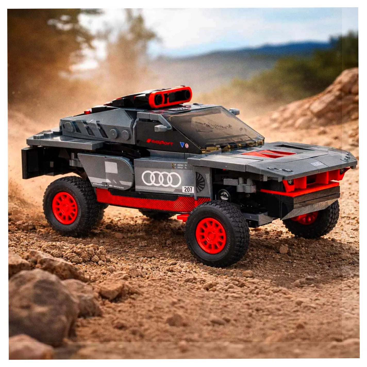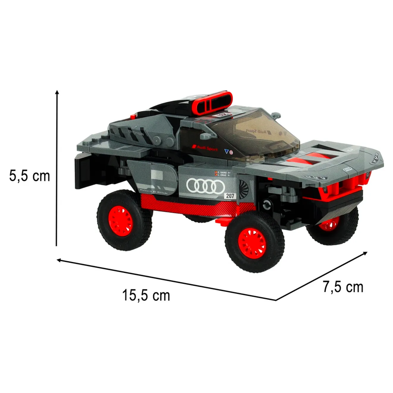 Zestaw 376 klocków pozwala na samodzielne złożenie kultowego samochodu sportowego – Audi RS Q e-tron w skali 1:30. Dzięki temu gotowy model staje się nie tylko atrakcyjną zabawką, ale również świetnym elementem dekoracyjnym, idealnym do wyeksponowania na półce każdego fana motoryzacji.
