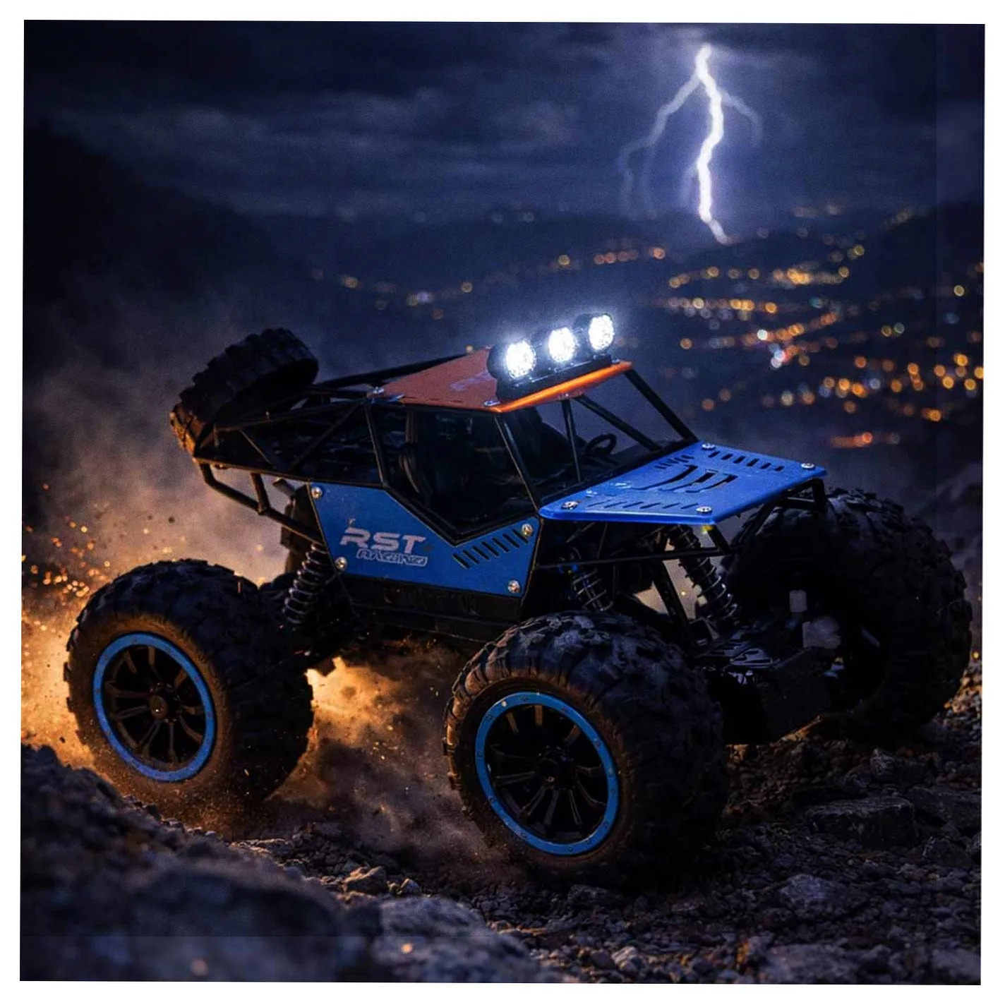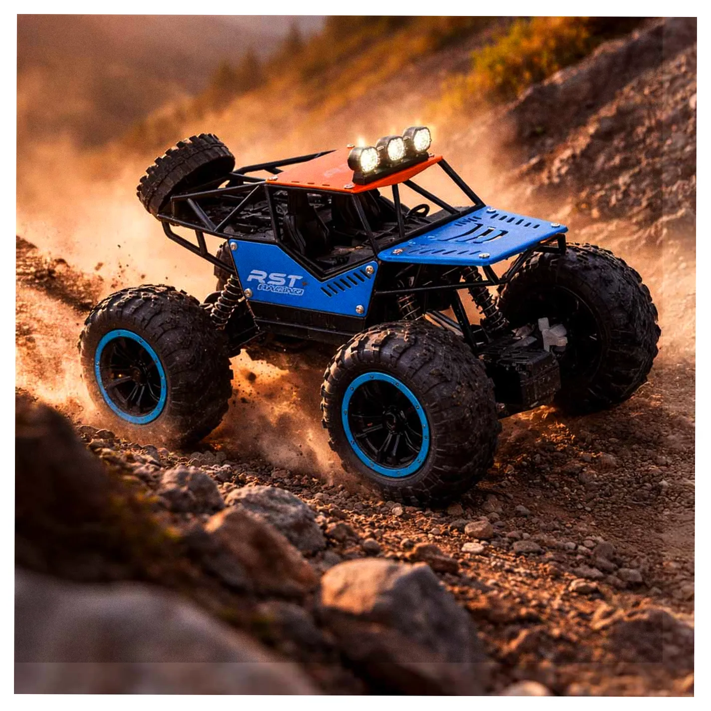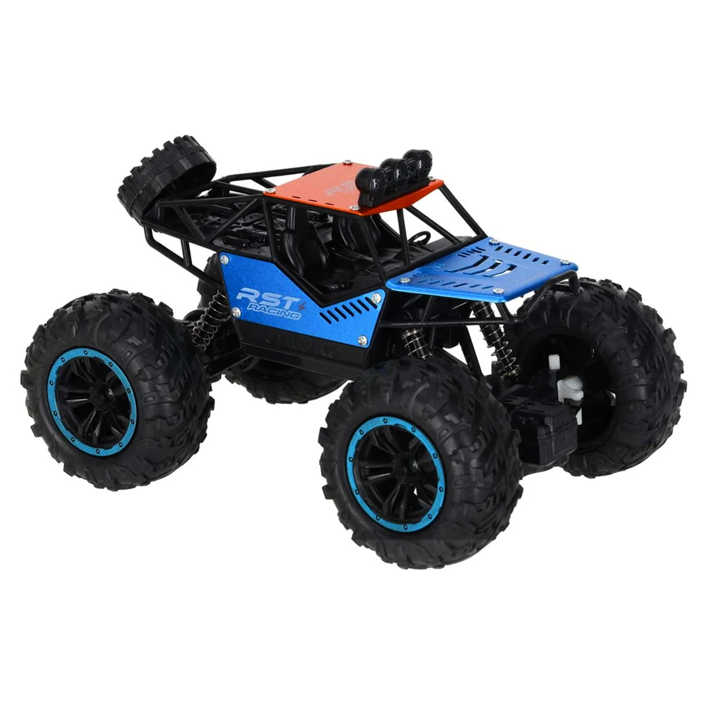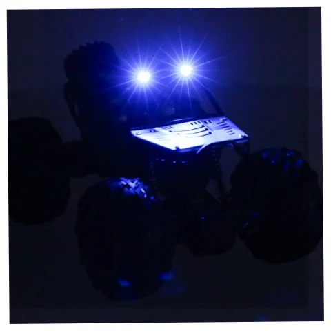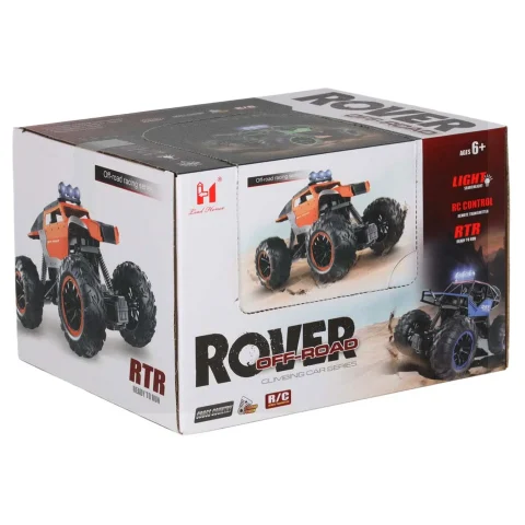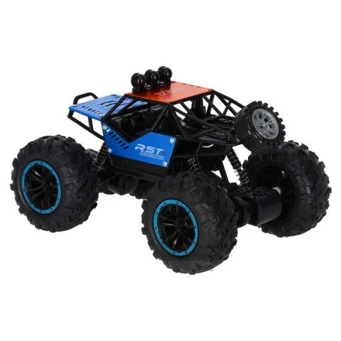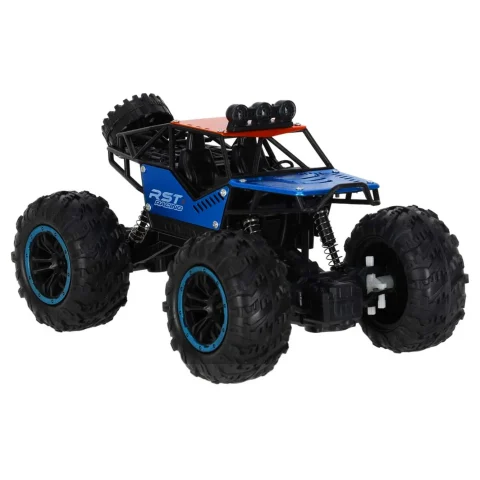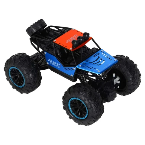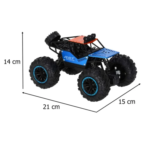 Zdalnie sterowany samochód terenowy – gotowy do jazdy od razu po wyjęciu z pudełka. Duże koła i sprężynowe amortyzatory zapewniają zwrotność pojazdu i wygodę jazdy. Auto może poruszać się po różnych typach nawierzchni. Wymiary: 21 cm x 15 cm x 14 cm