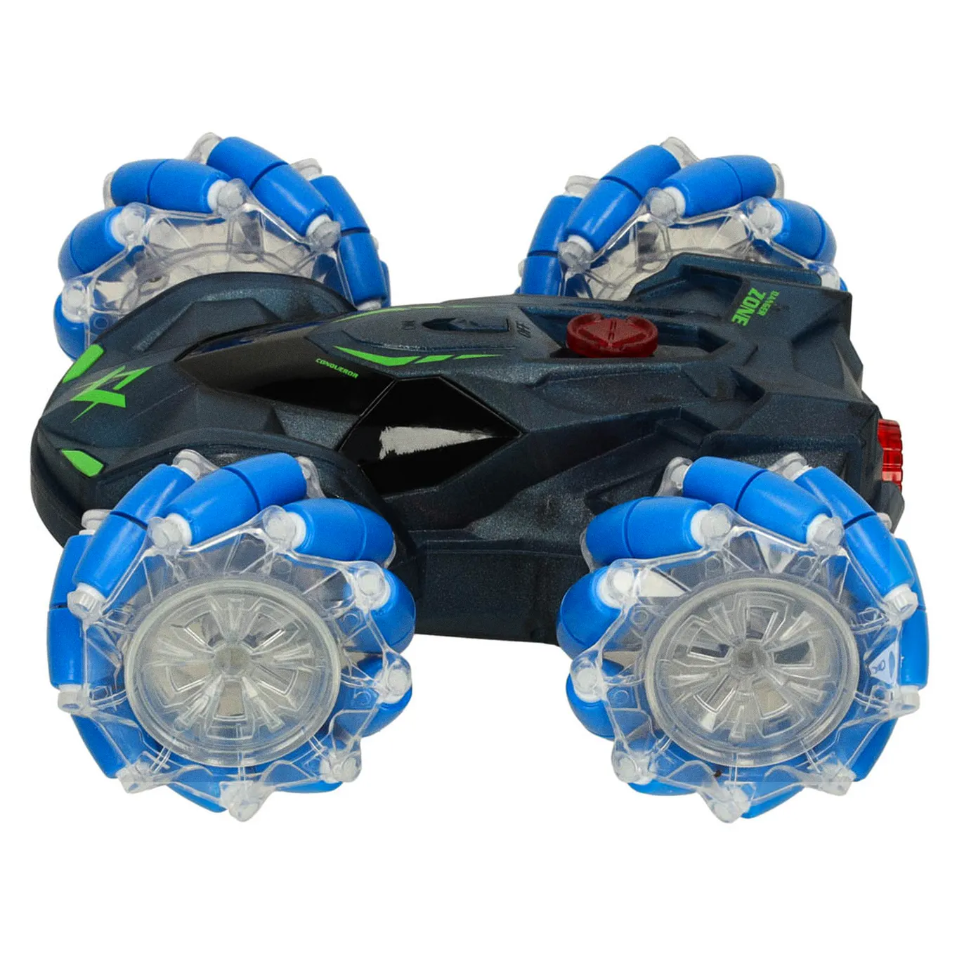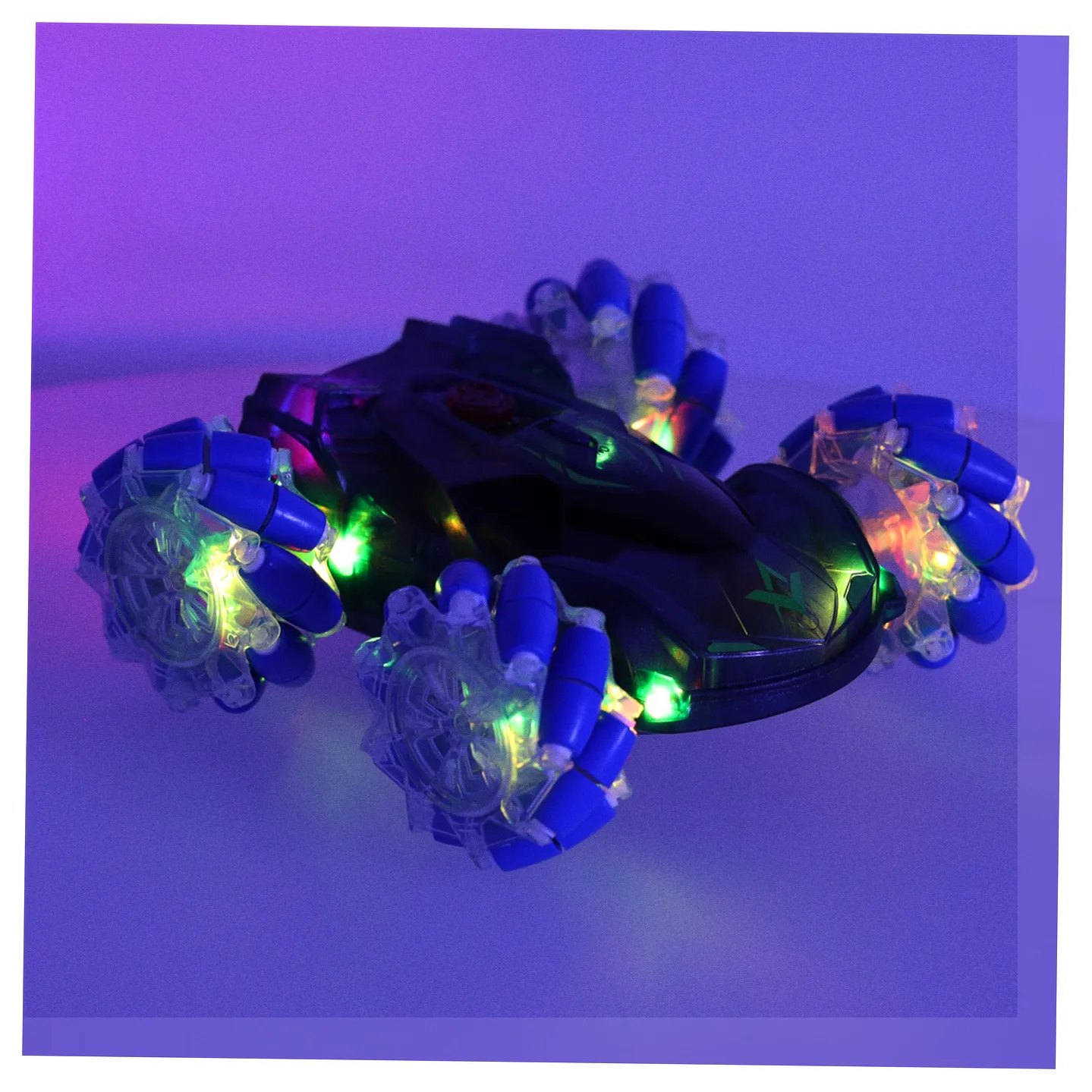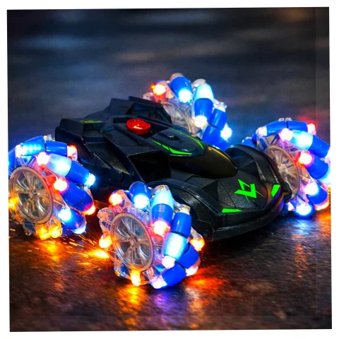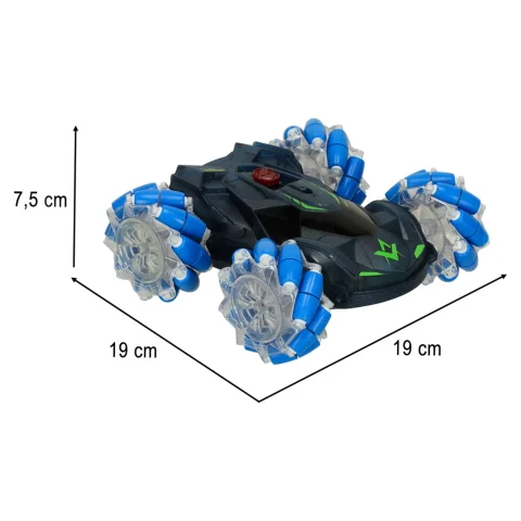 Niebieskie futurystyczne auto RC do driftowania i jazdy po różnych nawierzchniach. Świeci, wydaje realistyczne odgłosy silnika i wypuszcza parę wodną z wydechu. To pojazd jak z filmu, który zapewni wiele wrażeń. Wymiary: 19 cm x 19 cm x 7,5 cm
