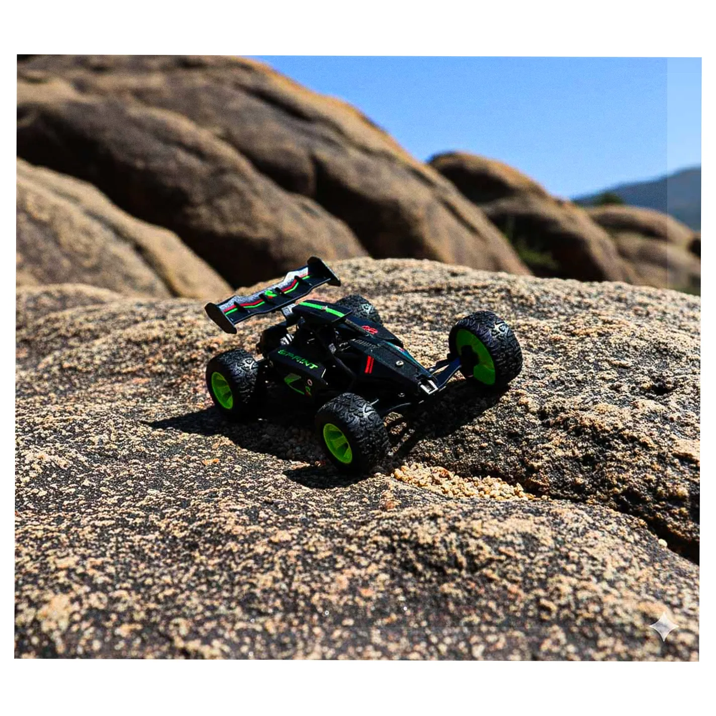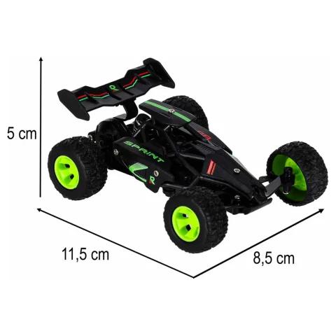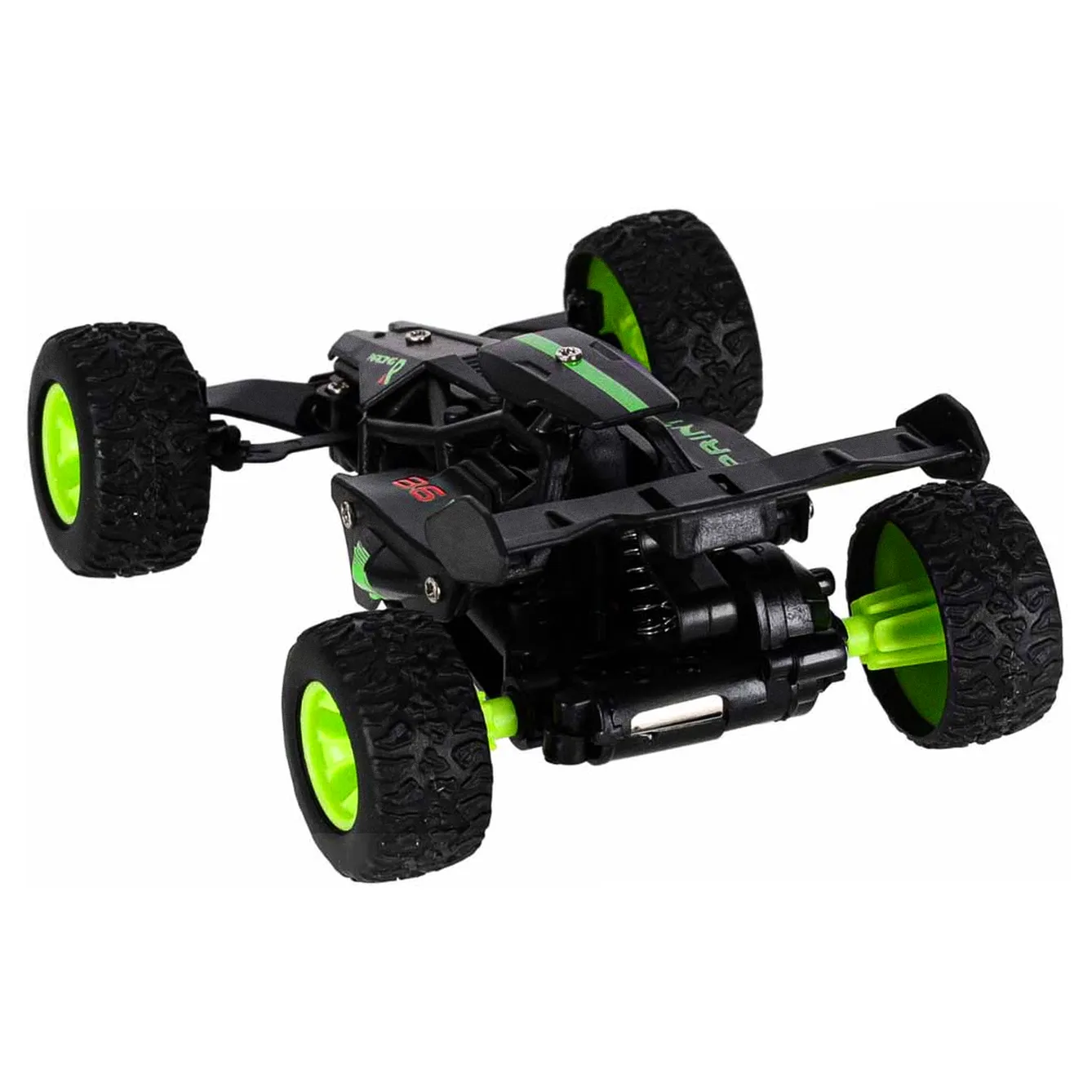 Mini zdalnie sterowane auto jest wyposażone w kontroler na baterie. Umożliwia on wygodne i sprawne sterowanie pojazdem. Ma trzy tryby prędkości – pojazd jest w stanie rozpędzić się aż do 15 km/h. Lekka konstrukcja auta i zwrotne koła dobrze sobie radzą z jazdą po trudnej nawierzchni.