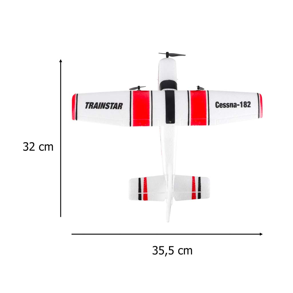 Zdalnie sterowany szybowiec Cessna 182 dla młodzieży i dorosłych. Może wystartować manualnie z ręki lub automatycznie. Jest wykonany z lekkiego materiału, dzięki czemu może lecieć wysoko pod wiatr. Wymiary: 32 x 35,5 x 7 cm