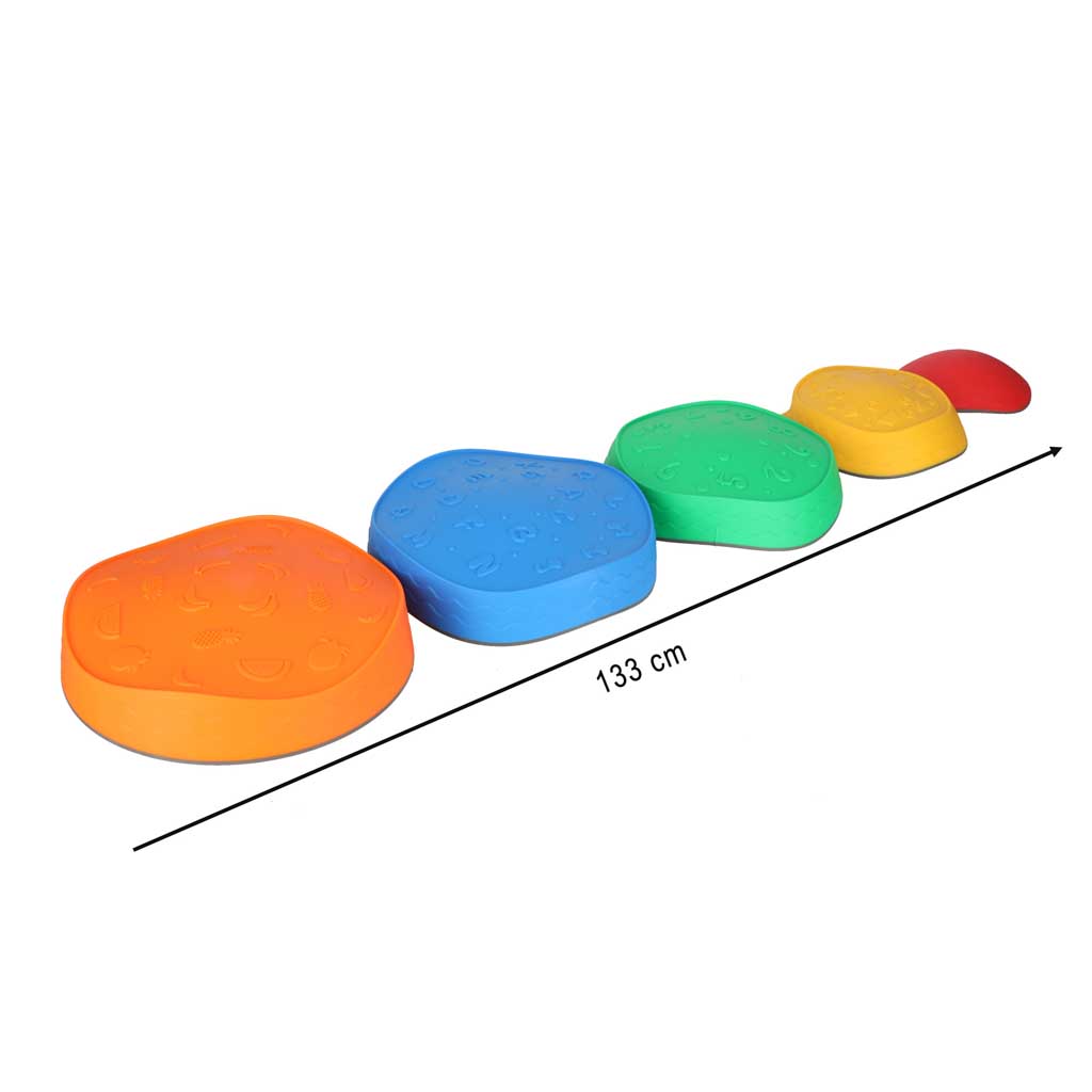 W trosce o komfort i bezpieczeństwo najmłodszych każdy kamień wyposażony został w antypoślizgowe podkładki, które zapobiegają przesuwaniu się na różnych powierzchniach. Wysokiej jakości poliuretanowe tworzywo jest wytrzymałe, odporne na uszkodzenia i przyjemne w dotyku.