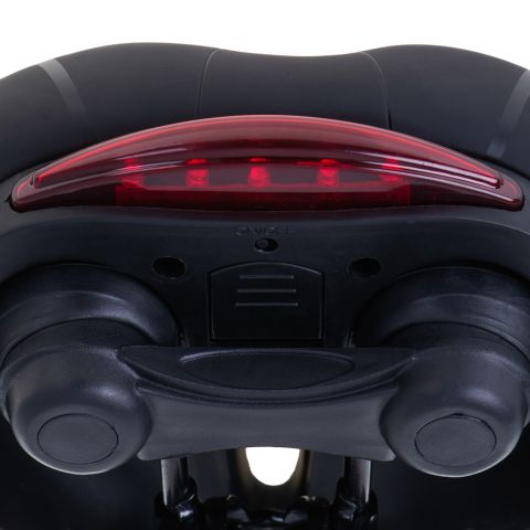 Dodatkowo lampka LED znajdująca się z tyłu siodełka zapewnia dodatkowe bezpieczeństwo w trakcje jazdy rowerem, szczególnie po zmroku.