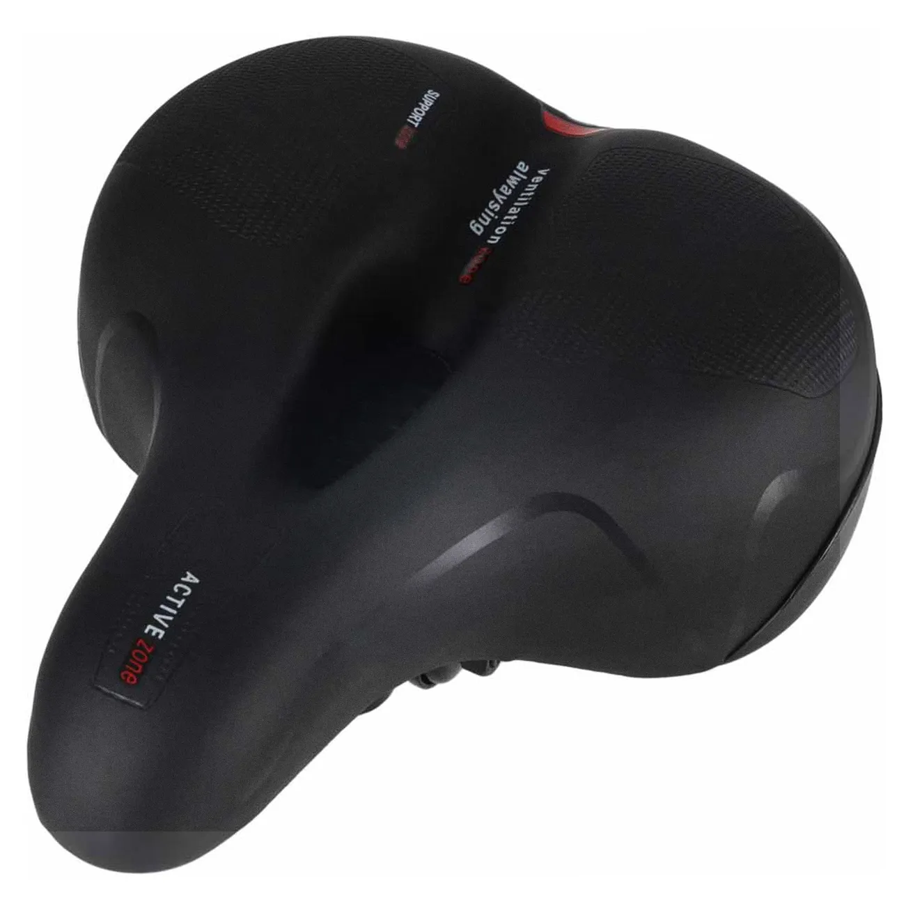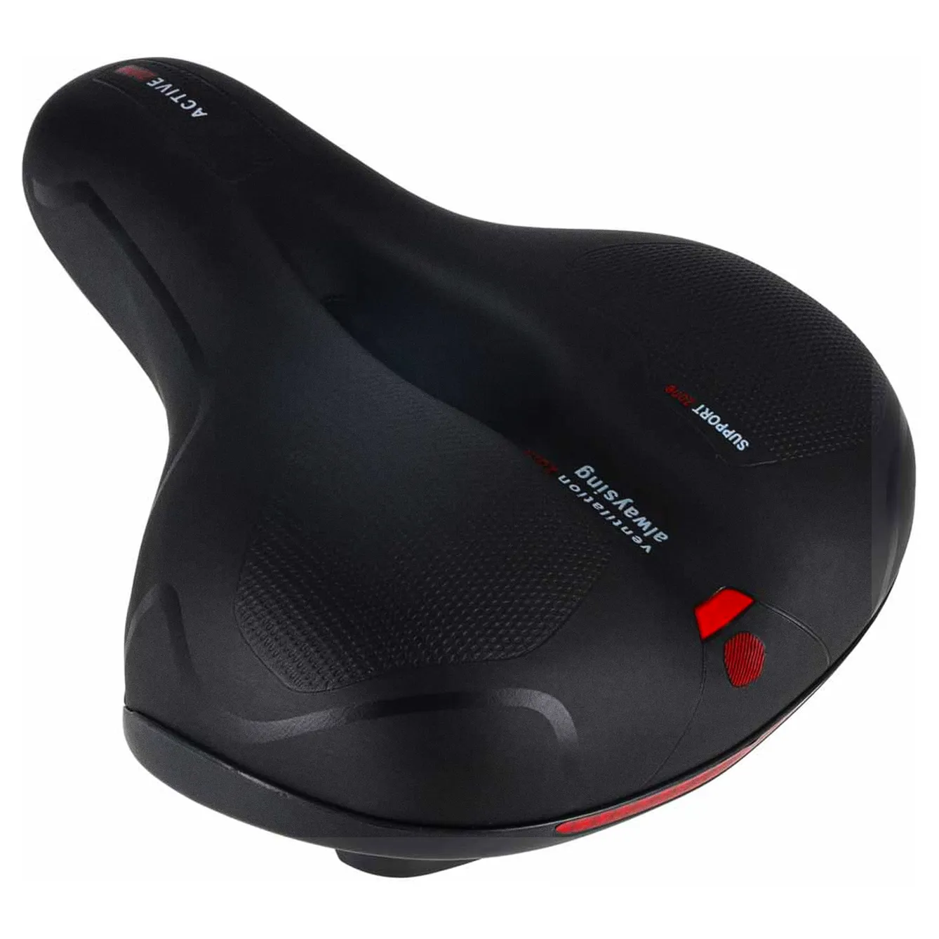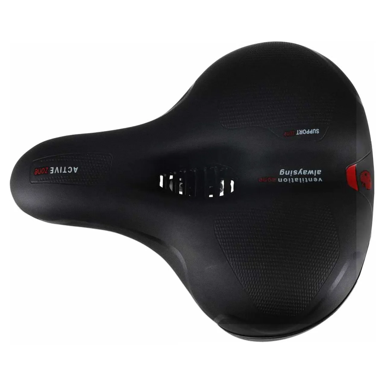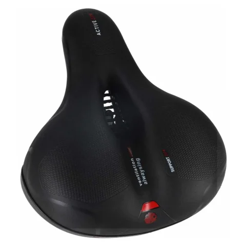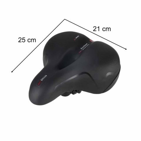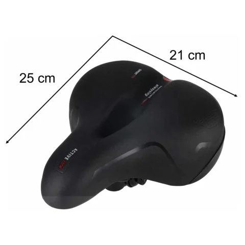 Siodełko rowerowe z piankowym wypełnieniem i systemem sprężyn skutecznie tłumi drgania. Wymiary 25,5x21x8,5 cm zapewniają stabilne podparcie. Anatomiczny otwór wspiera wentylację, a wodoodporne materiały i odblask zwiększają trwałość oraz bezpieczeństwo
