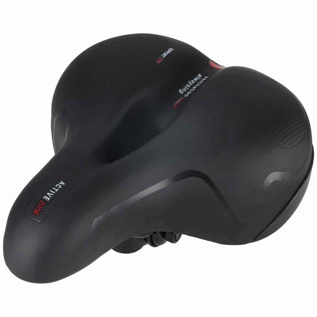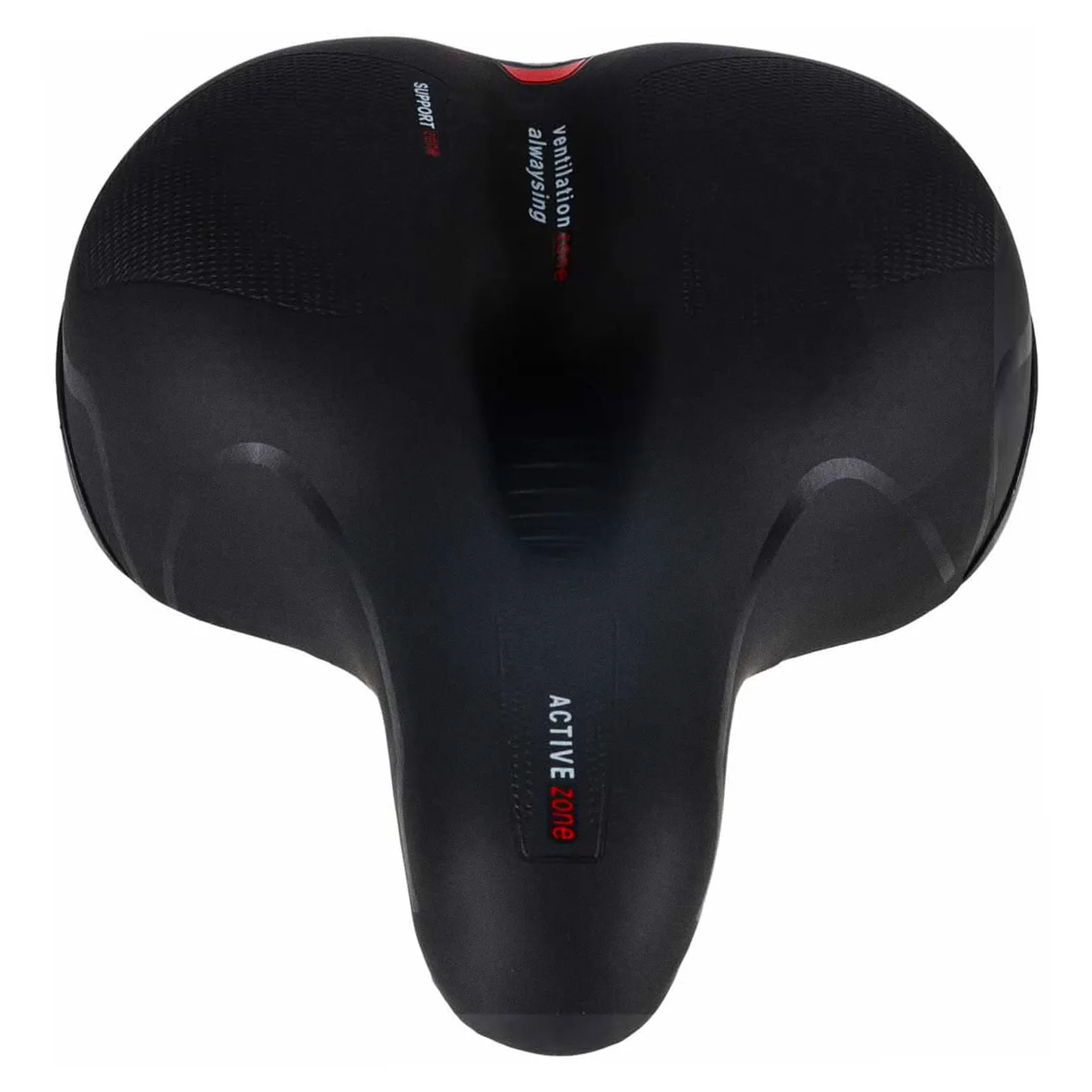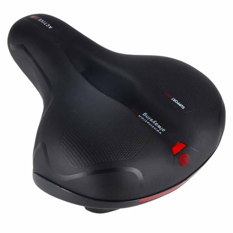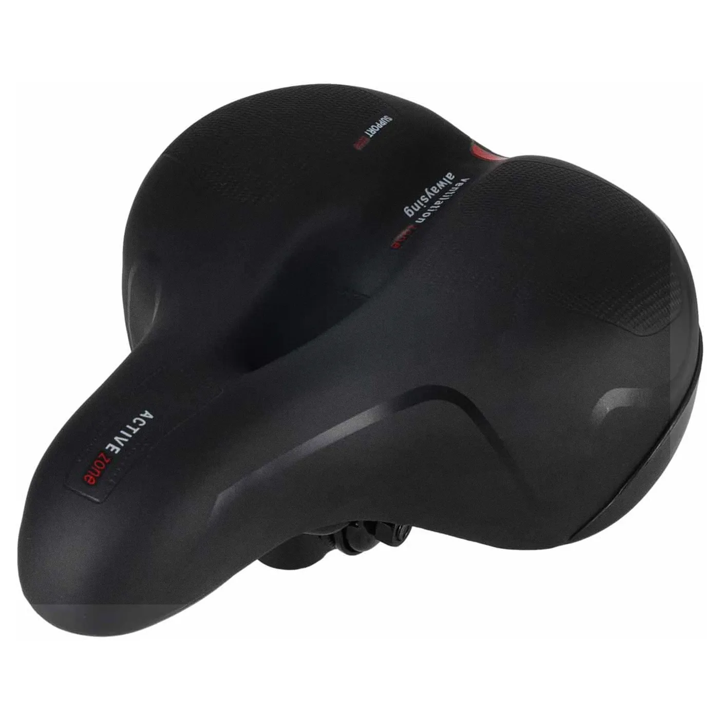 Siodełko rowerowe z piankowym wypełnieniem i systemem sprężyn skutecznie tłumi drgania. Wymiary 25,5x21x8,5 cm zapewniają stabilne podparcie. Anatomiczny otwór wspiera wentylację, a wodoodporne materiały i odblask zwiększają trwałość oraz bezpieczeństwo