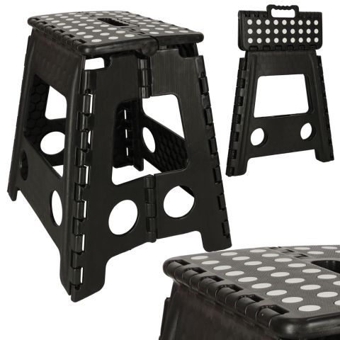 STOŁEK TABORET SKŁADANY ANTYPOŚLIZGOWY WYSOKI 39,5 CM CZARNY