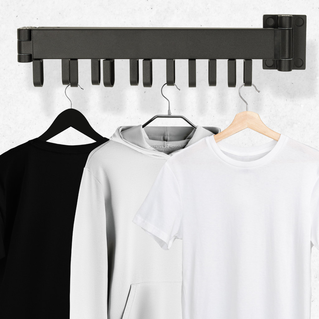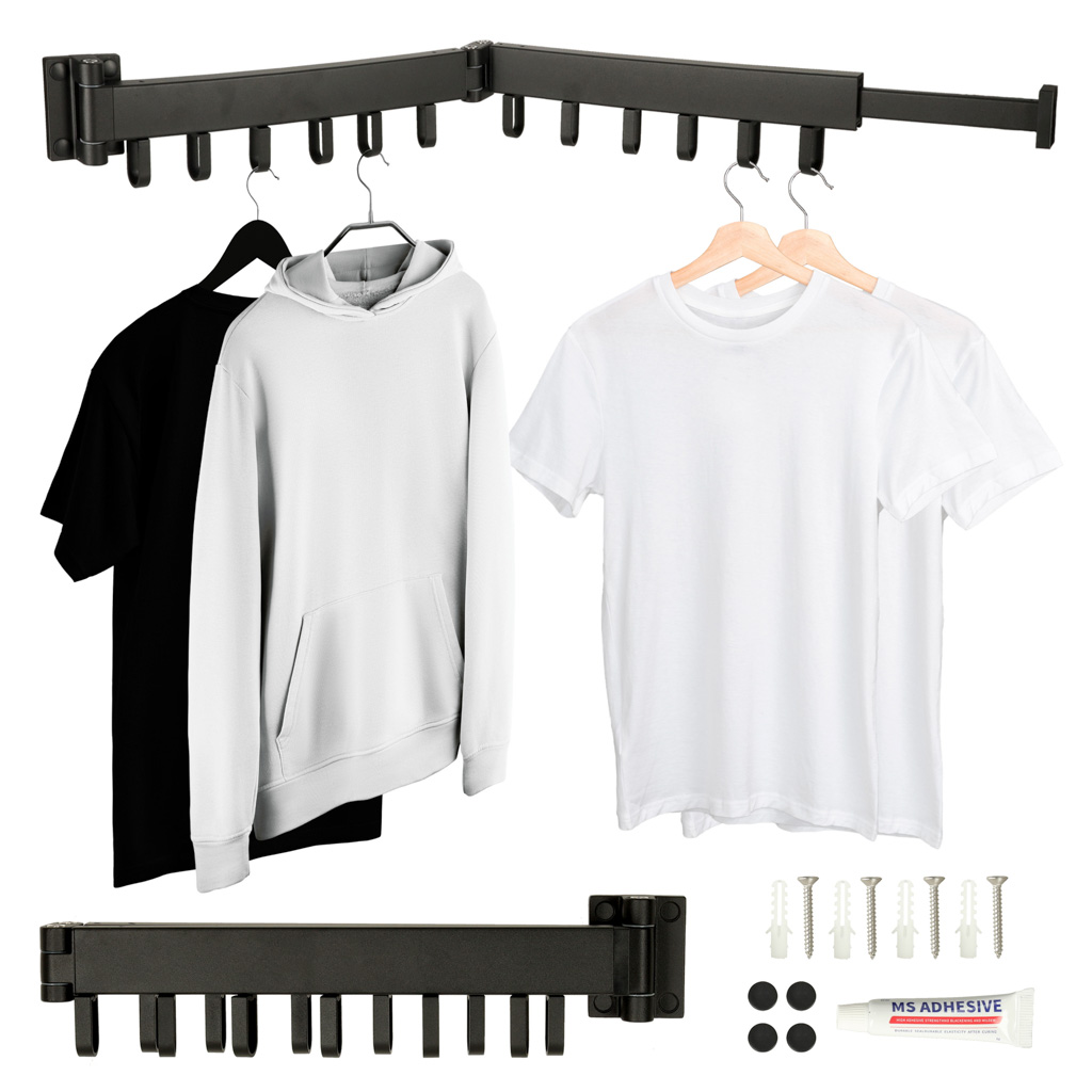 Suszarka na pranie wieszak ścienny naścienny składany teleskopowy czarny 12 haczyków 90cm