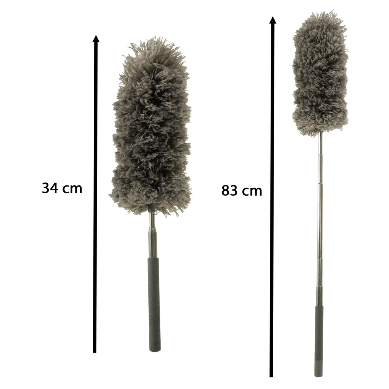 Dzięki teleskopowej konstrukcji miotełkę można wysunąć do wymaganej długości (maksymalnie do 83 centymetrów) i swobodnie wyczyścić wszelkie zakamarki bez konieczności brania drabiny czy przesuwania mebli.
