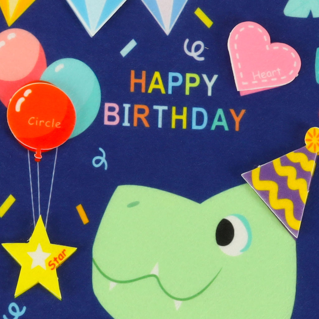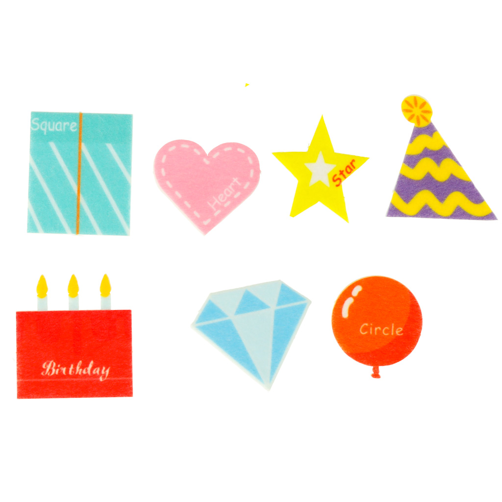 - Wyklejanki: serce, balony, gwiazdka, tort, prezent, stożkowa czapeczka urodzinowa, dinozaur