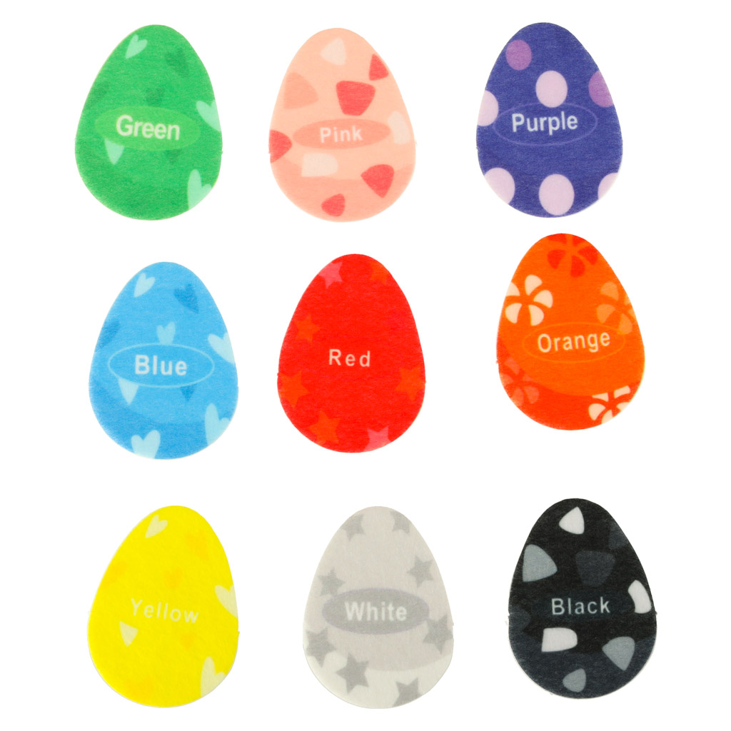 - Elementy do przyczepiania na rzepy: jajka z różnymi kolorami