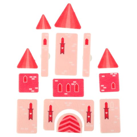 Filcowe tło przedstawiające zamek księżniczki zbudowany z figur geometrycznych