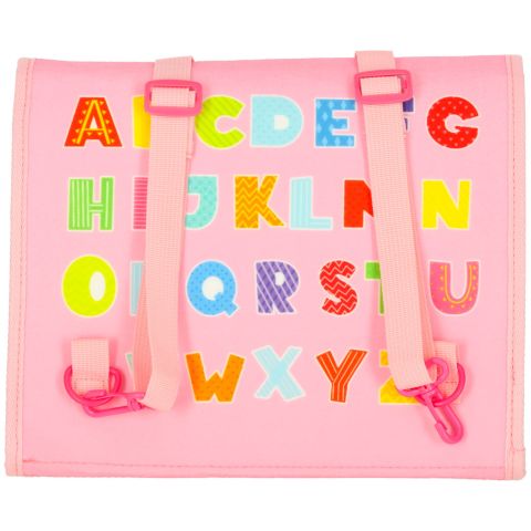 - W okolicy pasków do zakładania na plecy znajduje się kolorowy alfabet – idealny do nauki liter i rozpoznawania znaków
