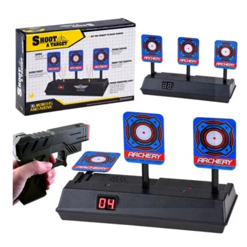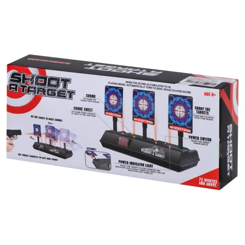 W tarczę można strzelać z pistoletów na piankowe strzałki. Posiada ona efekty świetlne i dźwiękowe uatrakcyjniające zabawę. Po trafieniu możemy usłyszeć dźwięk tłuczonego szkła lub oklaski. Dodatkowo na tarczy został umieszczony dwucyfrowy licznik punktów. Każdy cel po trafieniu kładzie się do tyłu. Po zestrzeleniu trzech tarcz otrzymujemy 1 punkt, po czym wszystkie podnoszą się automatycznie do góry.