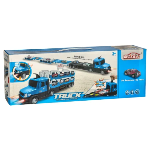 - wyjątkowy zestaw – w opakowaniu znajduje się wszystko, co potrzebne do fantastycznej zabawy: lawetę, tor wyścigowy i 10 samochodzików