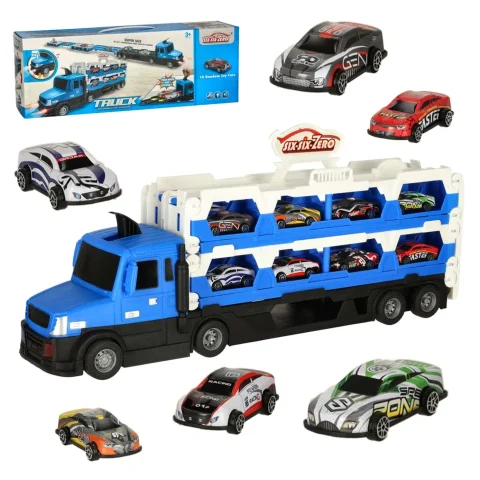 W zestawie znajduje się 10 samochodzików, dzięki czemu maluch znajdzie swój ulubiony, który pomoże mu wygrać każdy wyścig. Po skończonych wyścigach wszystkie pojazdy można załadować na lawetę i wyruszyć w trasę po nowe przygody.