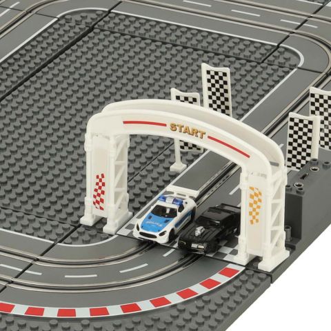 Elektryczny tor samochodowy to ekscytująca zabawka, która przeniesie dzieci w świat emocjonujących wyścigów i policyjnych pościgów! Dzięki torowi maluchy będą mogły wziąć udział w pasjonujących wyścigach, sterując dwoma autkami – czarnym sportowym samochodem oraz radiowozem.