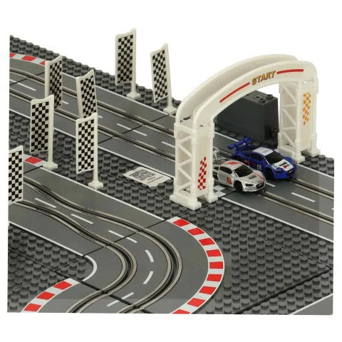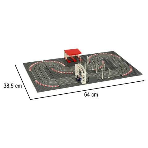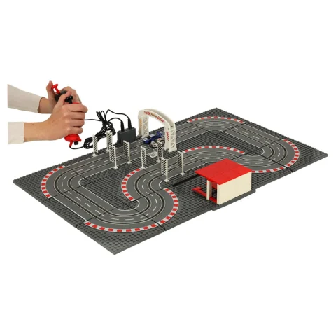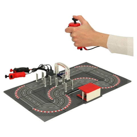 Zestaw składa się z ośmiu elementów, które po złożeniu tworzą tor z zakrętami. Dwa autka poruszają się po torze, a dzieci sterują nimi za pomocą joysticków, precyzyjnie kontrolując prędkość pojazdów. Zabawa wspiera rozwój zdolności manualnych oraz koordynacji ręka-oko. Dodatkowo kontrolowanie prędkości poprawia refleks, szczególnie gdy samochód zbliża się do zakrętów, co wymaga szybkiej reakcji.