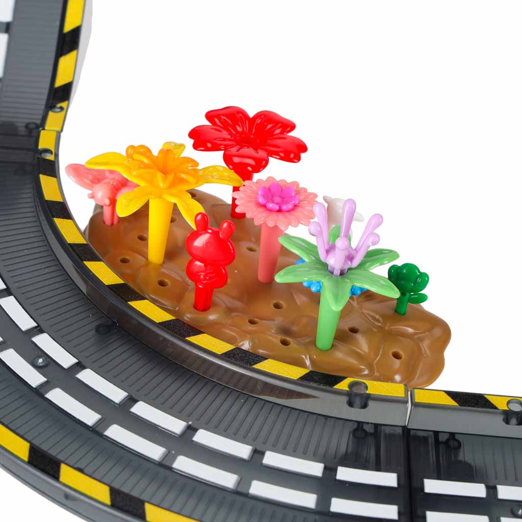 Ten zestaw magnetycznych klocków pobudza sposób myślenia prawdziwego konstruktora. Klocki magnetyczne umożliwiają tworzenie toru z zakrętami, wzniesieniami i przejazdami poprowadzonych wśród bogatej, kolorowej roślinności, która nadaje całej konstrukcji wyjątkowy charakter. Magnetyczne elementy pewnie się ze sobą łączą, co pozwala szybko zmieniać układ trasy bez wysiłku. Dodatkowe łączenia od spodu wzmacniają całą konstrukcję, dzięki czemu tor jest jeszcze bardziej stabilny nawet przy rozbudowanym układzie.