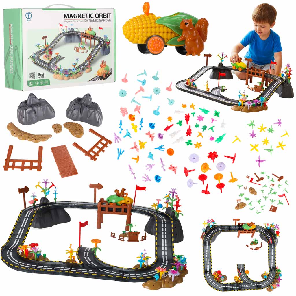 Magnetyczny tor samochodowy wyścigowy składający się z 153 elementów to zestaw konstrukcyjny z magnetycznych elementów toru i wzmocnionych łączników. Umożliwia budowę stabilnych, wielopoziomowych tras z dodatkowymi elementami krajobrazu.