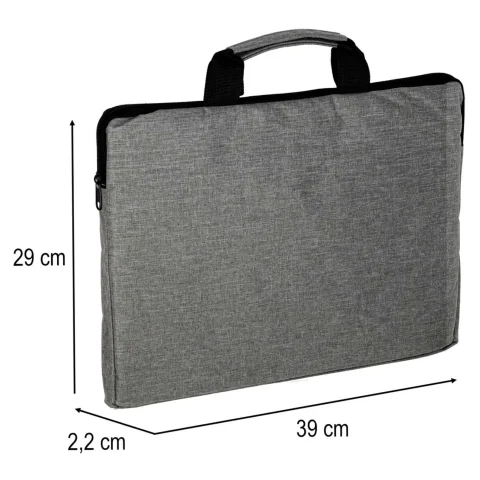 Torba na laptop do 15,6″ wykonana z wytrzymałej tkaniny Oxford 300D w kolorze szarym z czarnymi elementami. Posiada miękkie ścianki 0,7 cm chroniące przed wstrząsami, zamek błyskawiczny i rączki 8 cm. Wymiary zew. 39x29x2,2 cm, waga 0,17 kg.