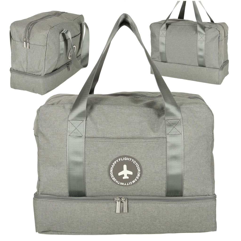 Torba podróżna bagaż podręczny do samolotu podróżna turystyczna pojemna uchwyt kieszenie 39x18x30 szara
