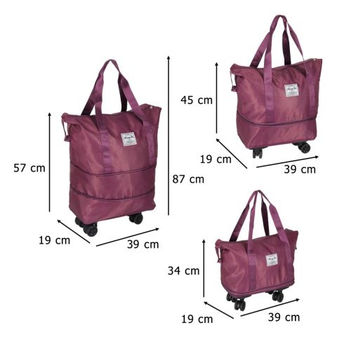 Torba podróżna na kółkach składana turystyczna pojemna 3 rozmiary fioletowa