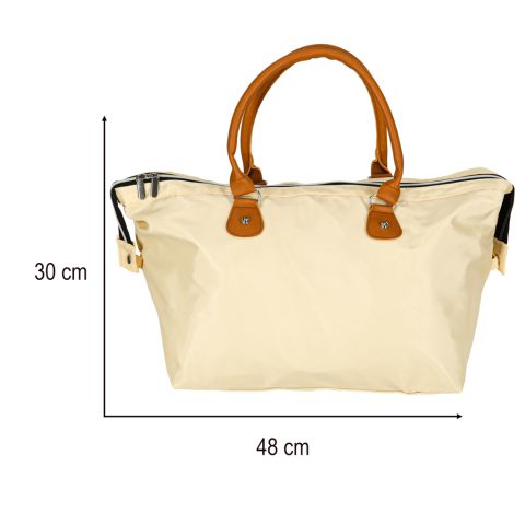 Klasyczny, beżowy kolor sprawia, że torba sprawdzi się nie tylko jako torba do wózka, ale również jako praktyczna torba na podróż czy siłownię.