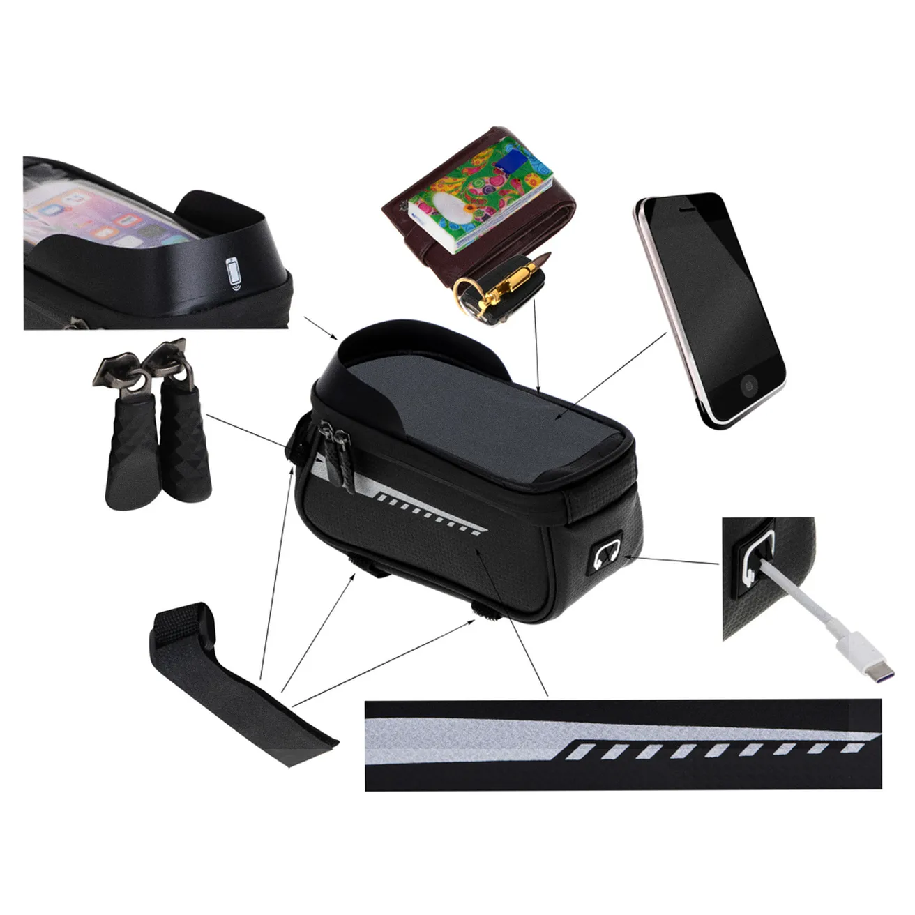 Specjalne miejsce na telefon, aby móc go swobodnie używać podczas jazdy jako nawigacji czy odtwarzacza muzyki. Telefon montuje się za pomocą rzepa w głównej kieszeni i jest oni widoczny podczas jazdy przez wodoszczelne przezroczyste okienko.