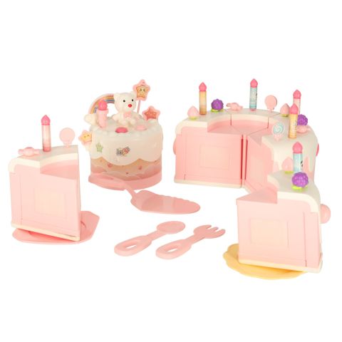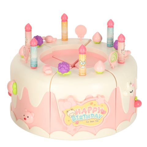 Tort urodzinowy piętrowy do krojenia na rzepy muzyka światła kuchnia 16 elementów różowy