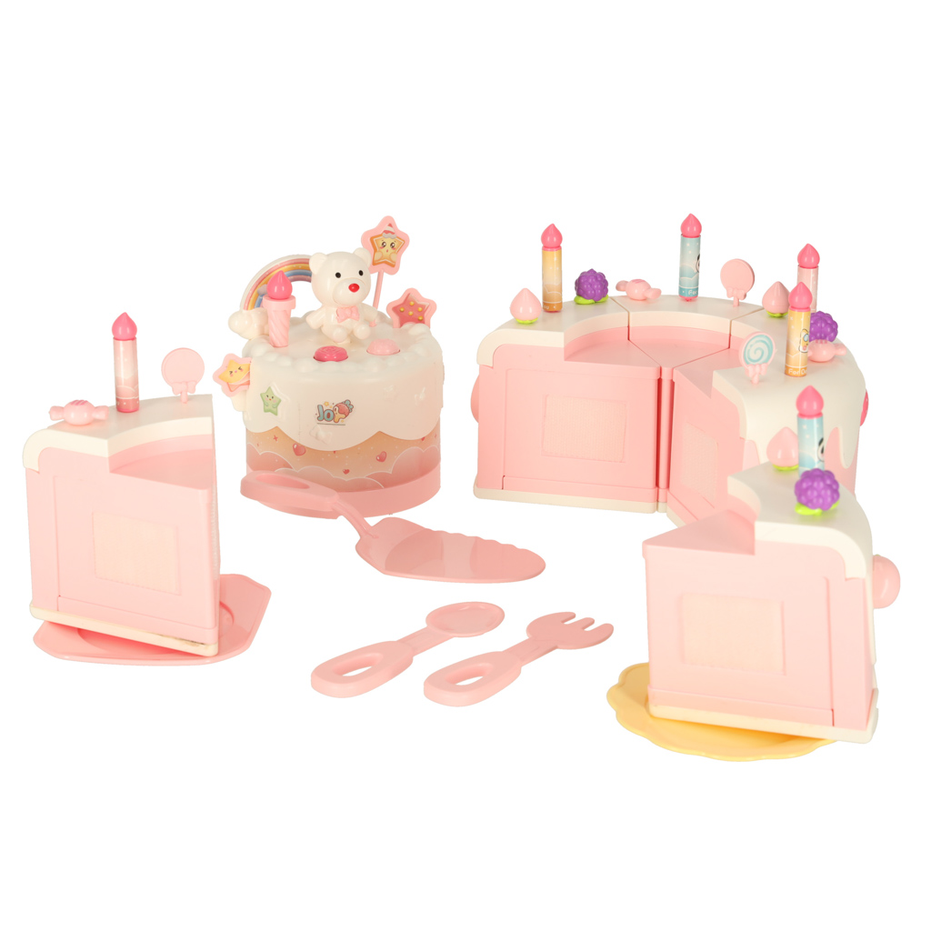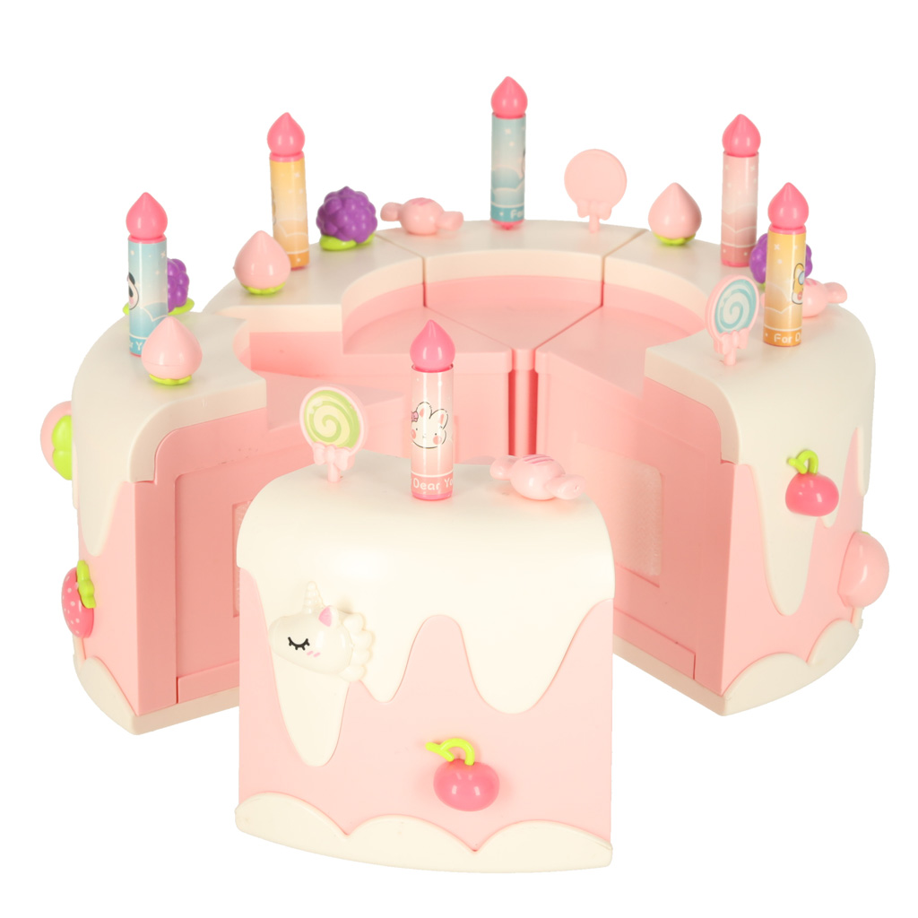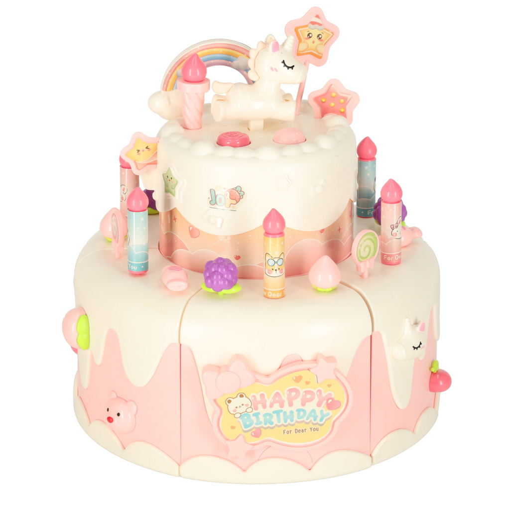 Tort urodzinowy piętrowy do krojenia na rzepy muzyka światła kuchnia 16 elementów różowy