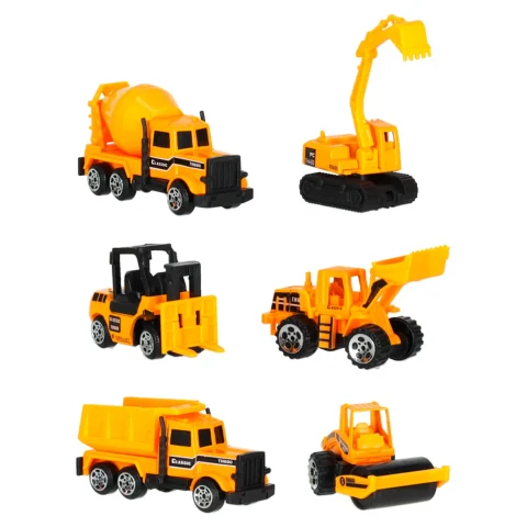 W zestawie 6 żółtych metalowych maszyn budowlanych: