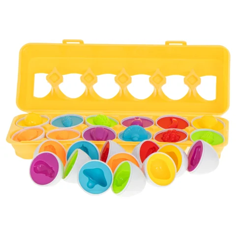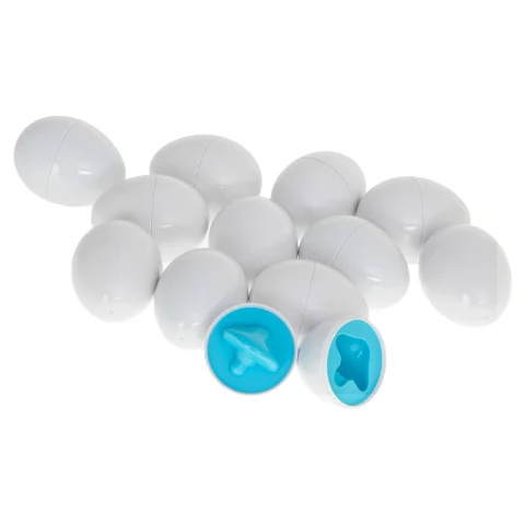 W zestawie znajdziesz 12 jajek ukrywających pod skorupką różne kształty i kolory.