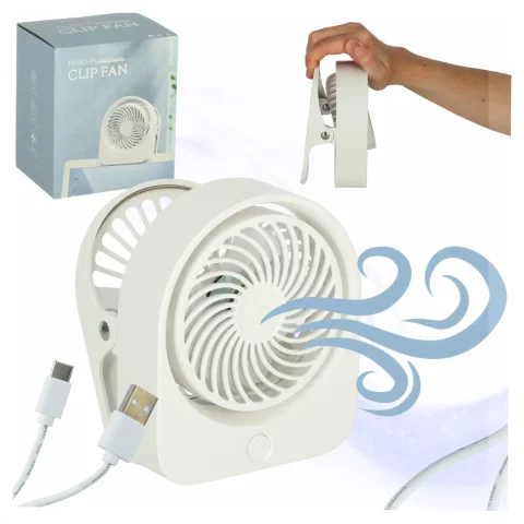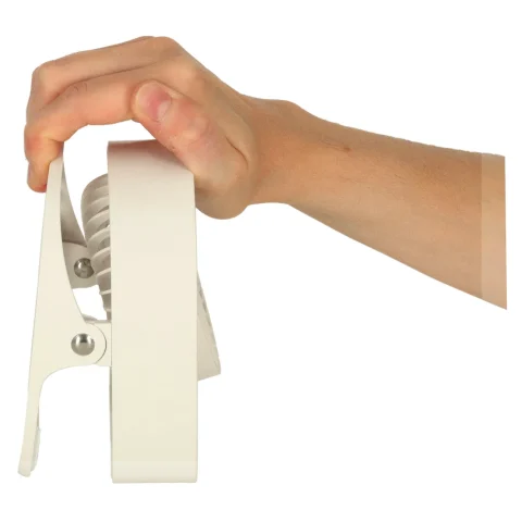 Wiatrak możesz umieścić w dowolnym miejscu, stawiając go, wieszając lub mocując klipsem do dowolnego przedmiotu.