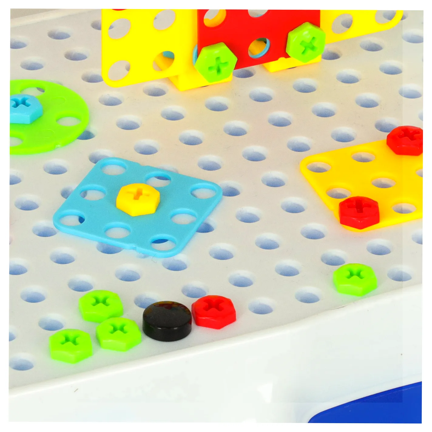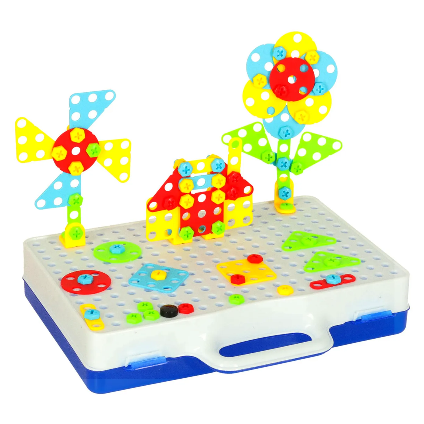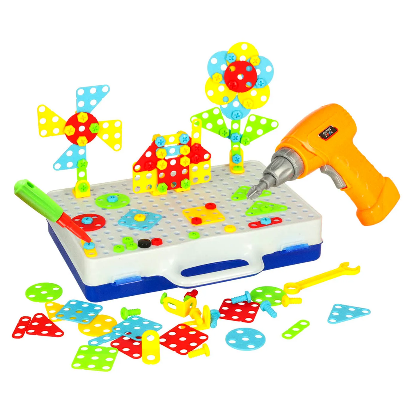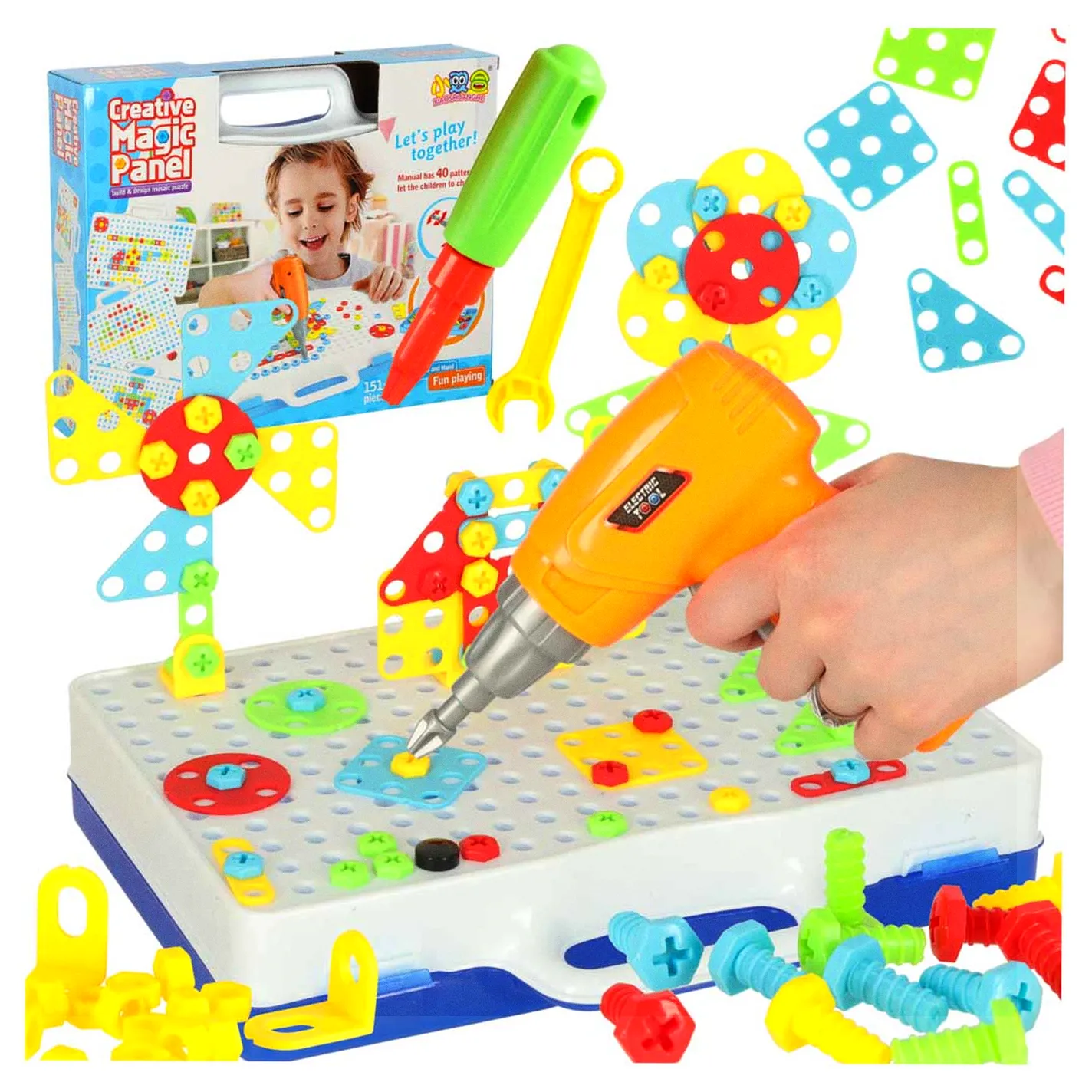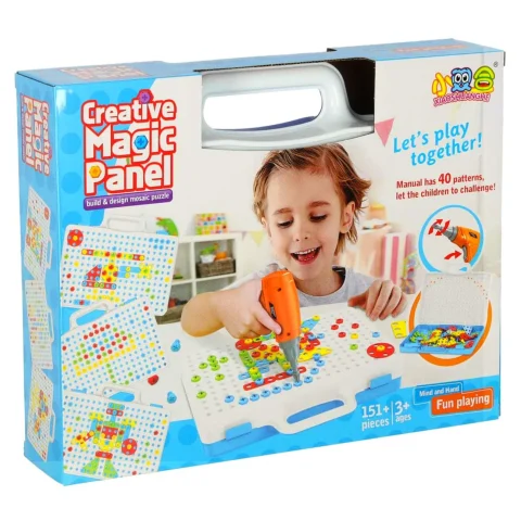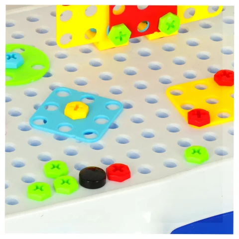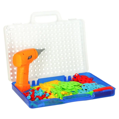 Zestaw Edukacyjny Puzzle Klocki + wkrętarka, zainteresuje niejedno dziecko, rozwija zdolności motoryczne dziecka. Wymiary walizki: 24cm x 30cm x 6cm