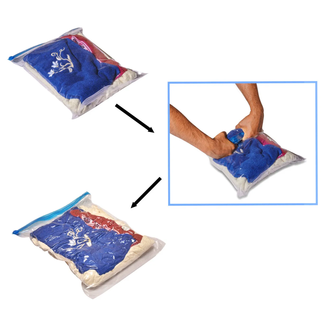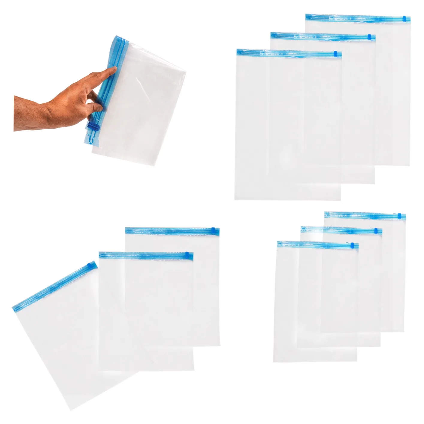 Dziewięć worków rolowanych w różnych rozmiarach (35×50 cm, 40×50 cm, 50×70 cm) pozwolą na schowanie wielu różnorodnych przedmiotów, chroniąc je przy tym od kurzu, wilgoci, brudu, przykrych zapachów, a także owadów – w szczególności moli. Więc po wyjęciu przedmiotów z worków nawet po długim czasie, będą one w tym samym stanie co przed zamknięciem worka!