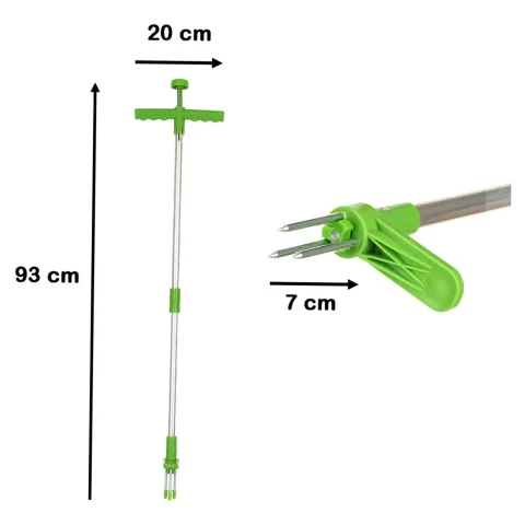 Praktyczny wyrywacz chwastów, który umożliwia pozbycie szkodliwych chwastów bez potrzeby schylania się czy używania środków chemicznych. Niezbędny na każdej działce i w każdym ogrodzie. Tworzywo: aluminium, plastik. Całkowita długość: 93 cm.