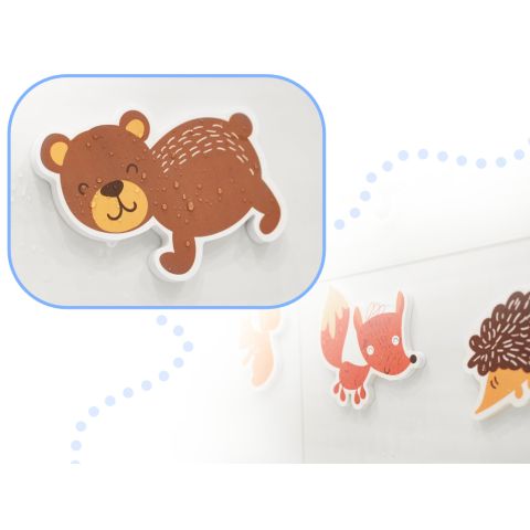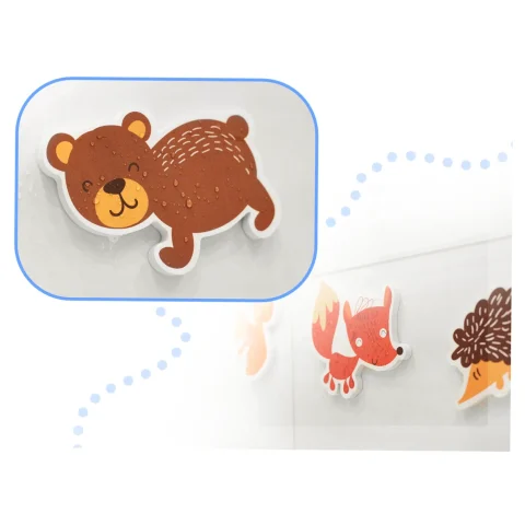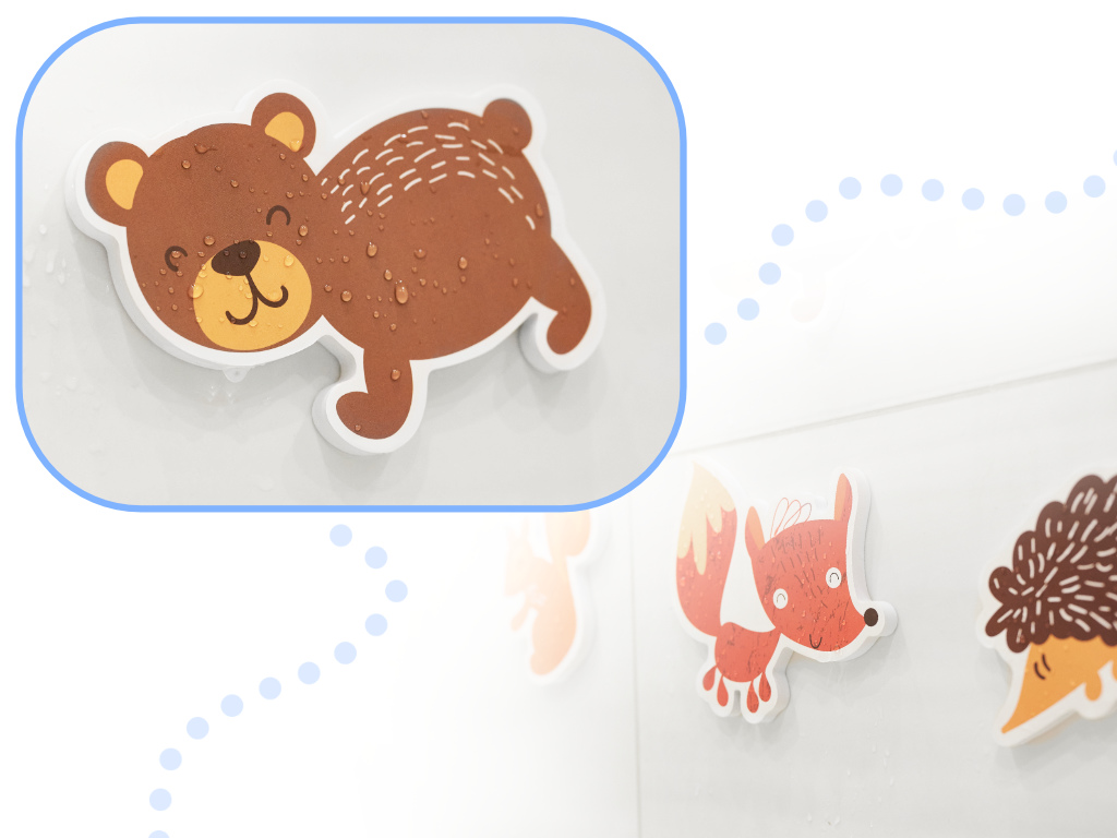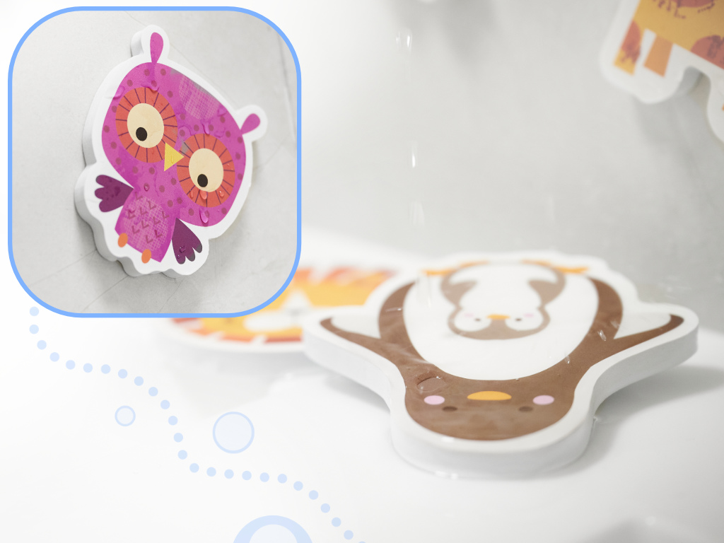 Wszystkie elementy zostały wykonane z miękkiej i trwałej pianki. Nie potrzebujesz kleju by puzzle trzymały się na wannie lub glazurze. Wystarczy namoczyć je w wodzie.