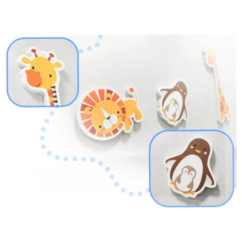 Zestaw magicznych puzzli w kształcie zwierzątek to innowacyjna zabawka do kąpieli, która dostarczy dziecku mnóstwo wrażeń.