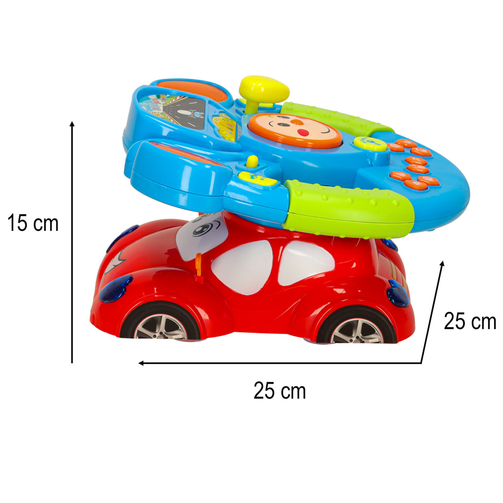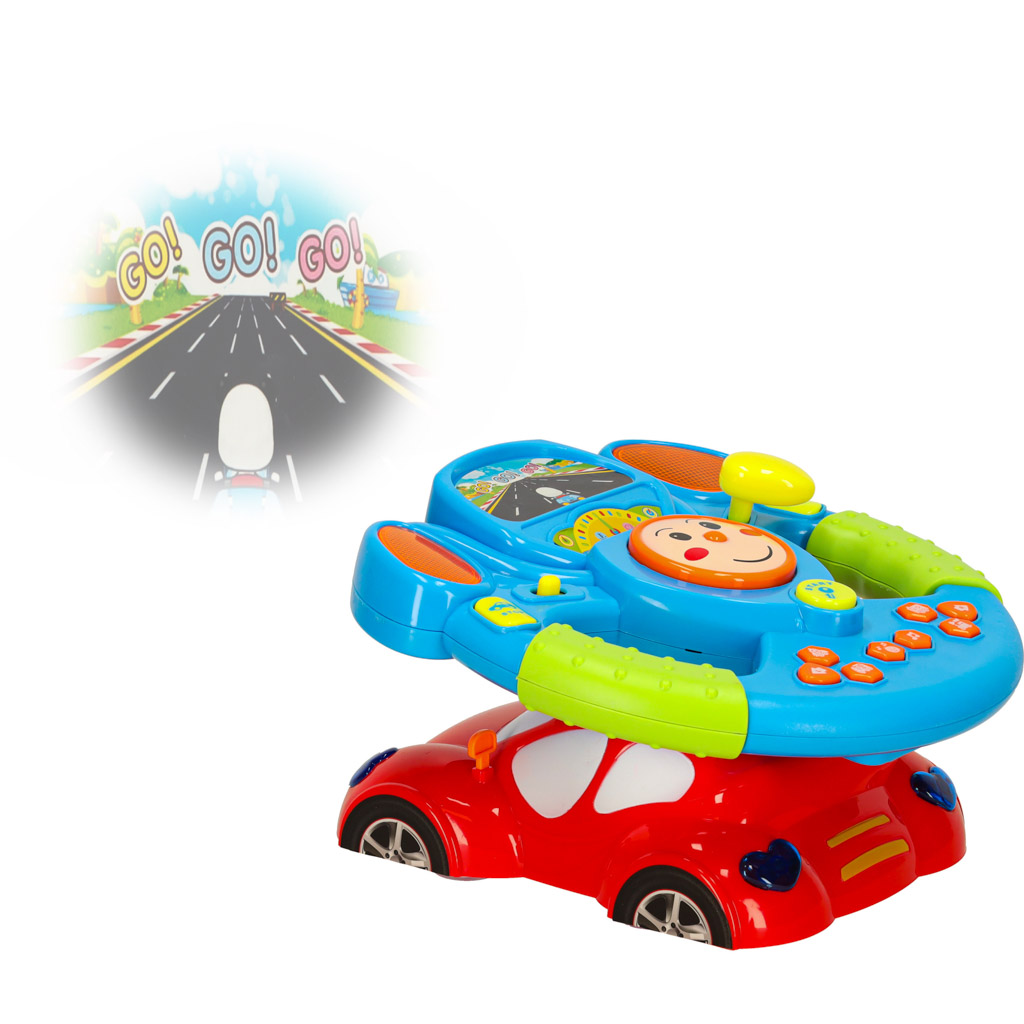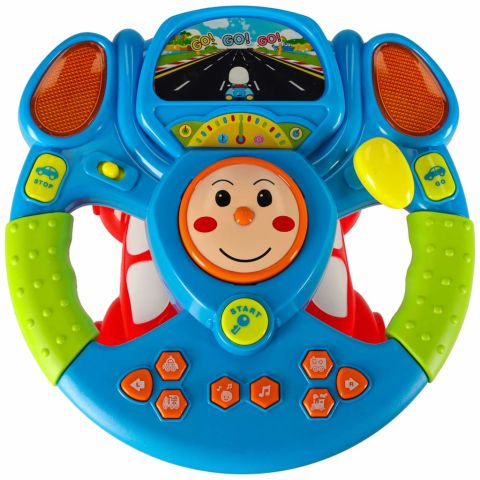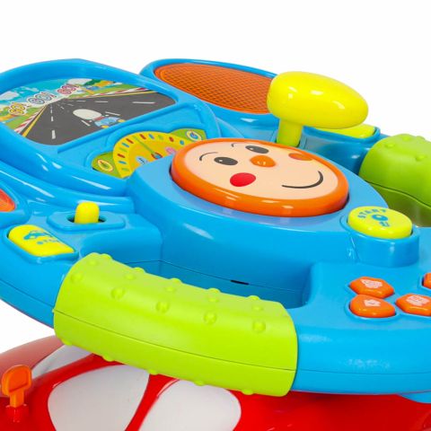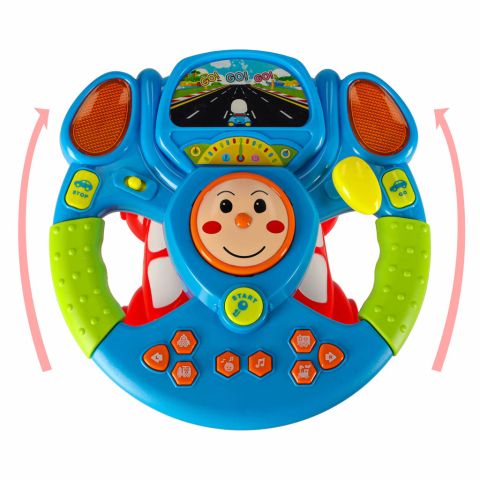 Interesujące efekty świetlne i dźwiękowe wpływają na bodźce słuchowe i wzrokowe dziecka, a także na poczucie rytmiki. Za pomocą przycisków można włączyć dźwięk uruchamiania, hamowania oraz przyspieszania samochodu. Kierownica ma lampki po obu stronach, które reagują na przyciski kierunkowskazu. Oprócz tego, kierownica może odtwarzać piosenki oraz wesołe melodyjki.
