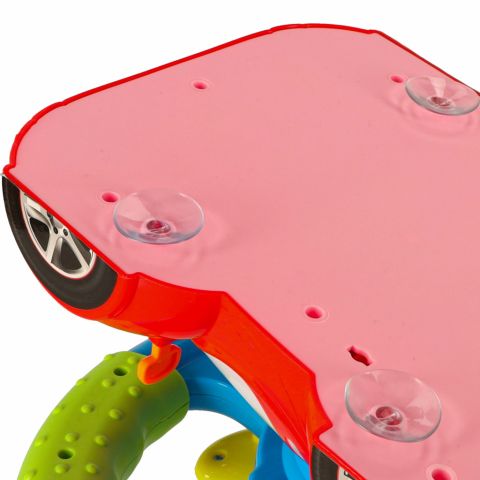 - Stabilnie utrzymuje się na płaskiej powierzchni – podstawa z przyssawkami nie przesuwa się podczas zabawy
