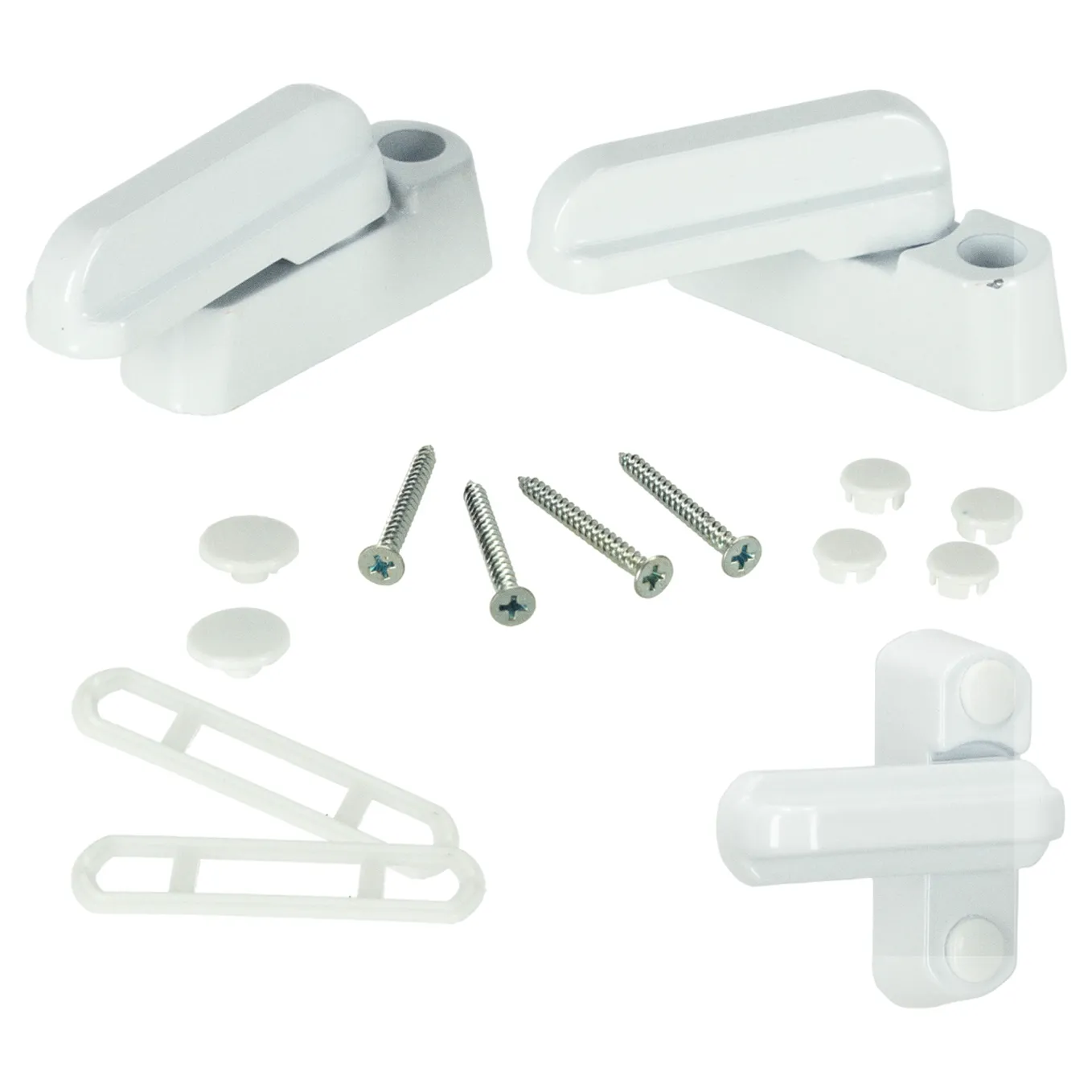 Zestaw dwóch solidnych, metalowych zabezpieczeń do OKIEN I DRZWI – skutecznie zablokuje klamkę, a tym samym uniemożliwi otwarcie drzwi lub okna.