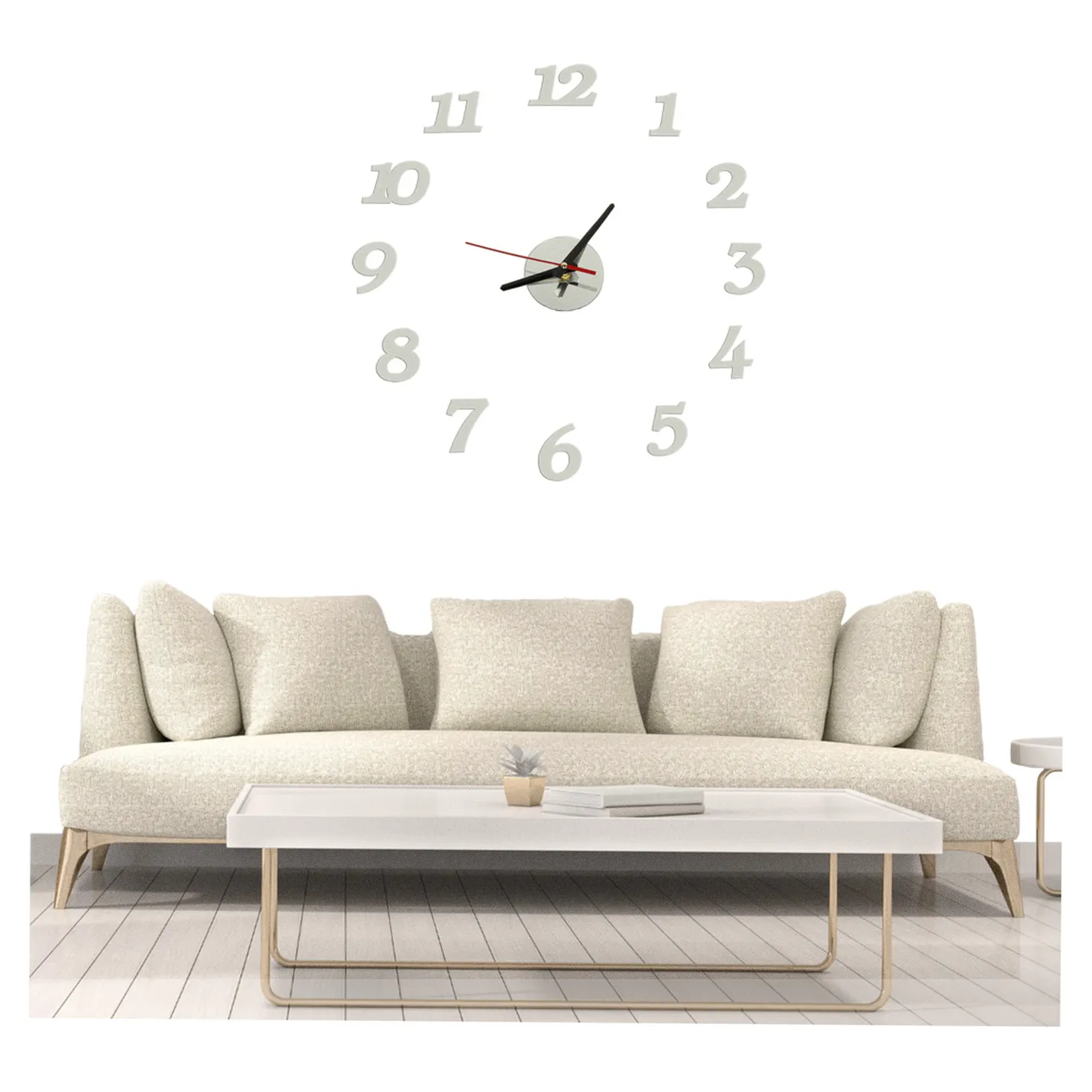 DUŻY ZEGAR ŚCIENNY SREBRNY 12 GODZIN