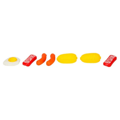 - Akcesoria do grillowania (3 patyczki do szaszłyków, jajko, 2 kawałki mięsa, 2 kiełbaski, 2 kolby kukurydzy, 2 sosy)