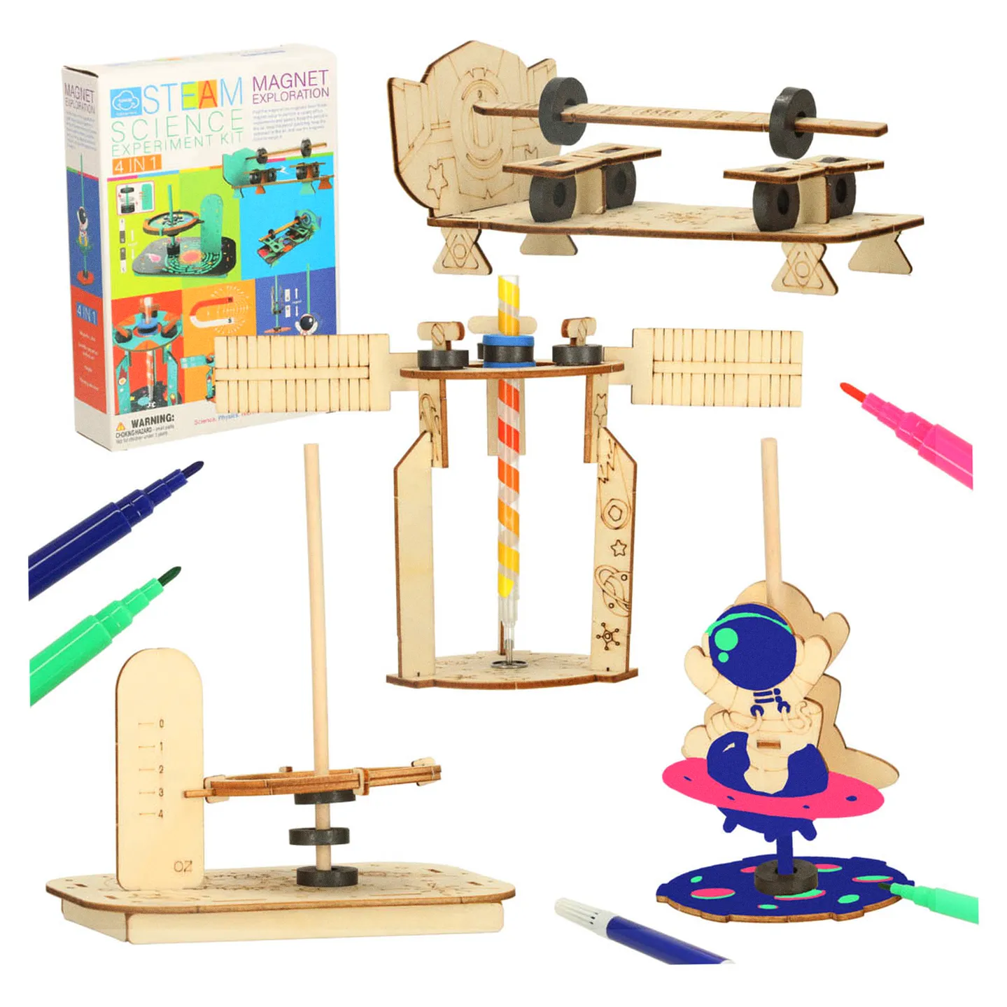 Wszystkie modele są przeznaczone do samodzielnego złożenia. Elementy został zaprojektowany tak, by ułatwić wykonanie doświadczeń, bez konieczności posiadania dodatkowych narzędzi. Drewniane elementy zostały starannie przygotowane, aby połączyć je bez użycia kleju. Dziewięć kolorowych mazaków dołączonych do zestawu pozwala ozdobić każdy model według własnej wyobraźni.