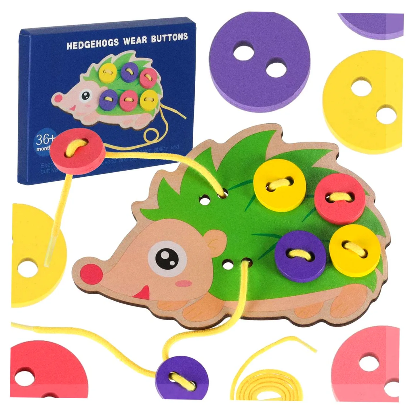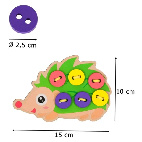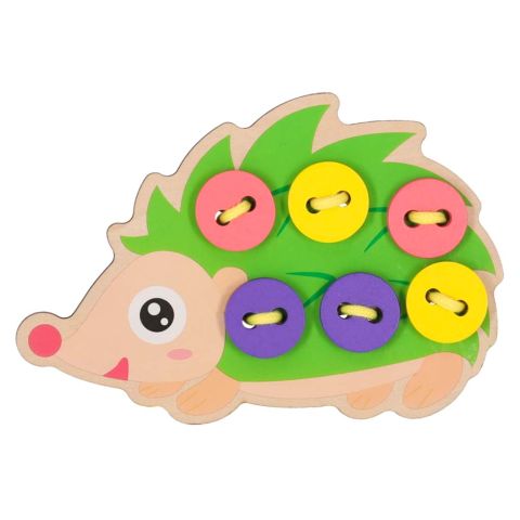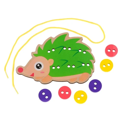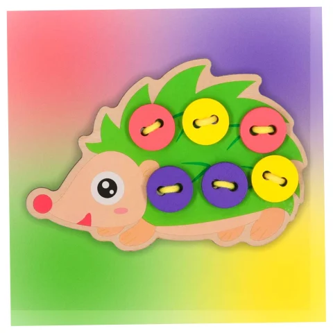 Sympatyczny jeżyk to doskonała propozycja zabawy wspierającej prawidłowy rozwój dziecka. Pomocny podczas nauki szycia i wiązania kokardek. Podczas przekładnia sznureczka przez dziurki dziecko będzie ćwiczyć sprawność manualną oraz umiejętność logicznego myślenia.
