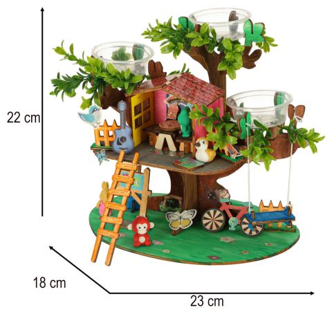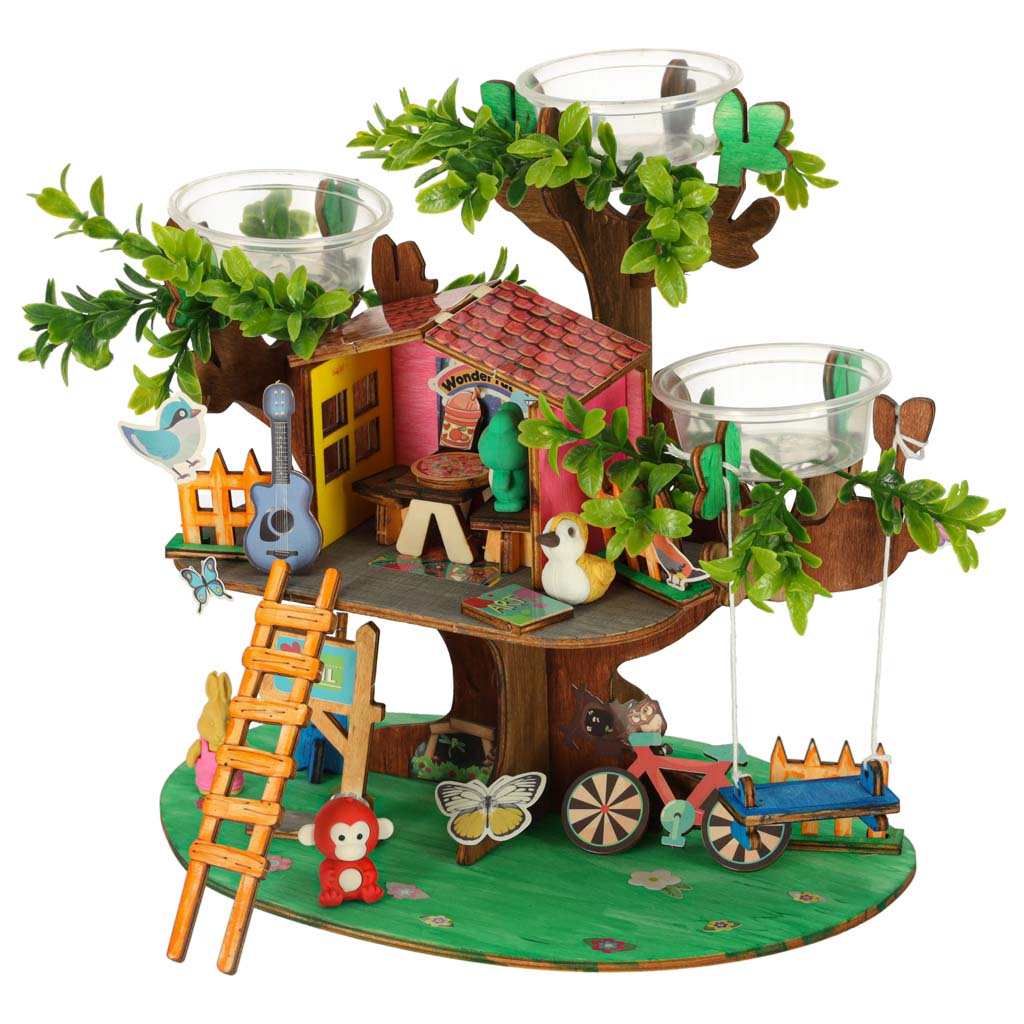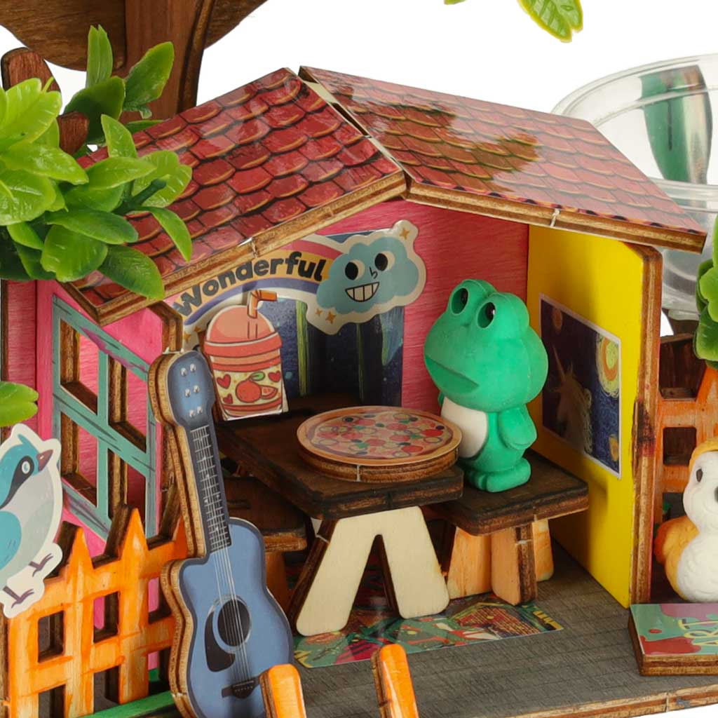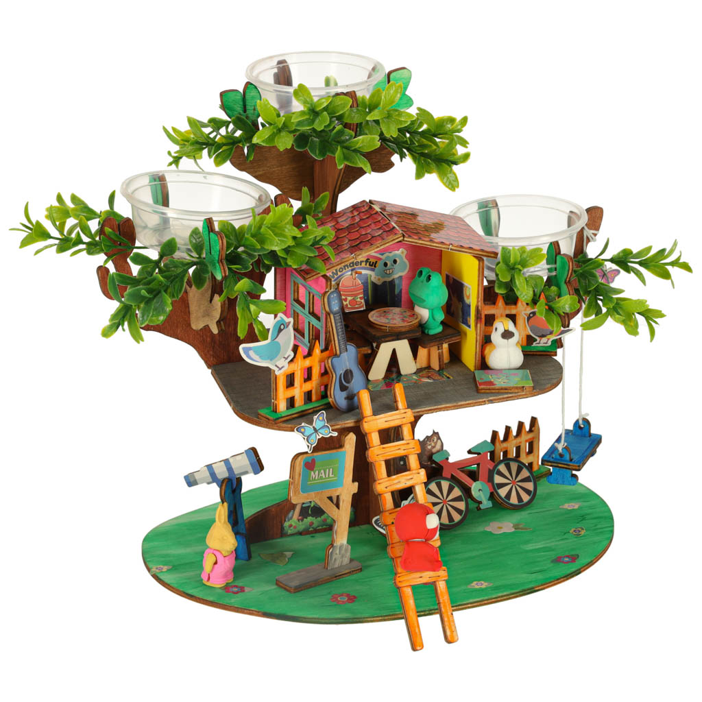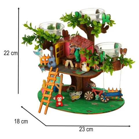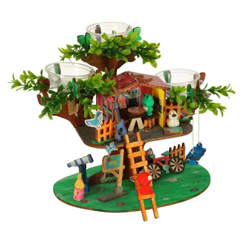 Zestaw DIY do stworzenia własnego domku na drzewie to kreatywna zabawka, która rozwija kreatywność, umiejętności manualne i zmysł estetyczny dziecka, a przy tym daje mu niesamowitą satysfakcję z własnoręcznie stworzonego domku.