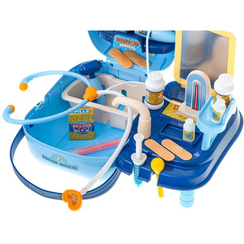 Jak na prawdziwego lekarza przystało całość została zapakowana w praktyczna walizkę, która umożliwi zabranie wszystkich przyrządów na wizytę u kolejnego pacjenta.